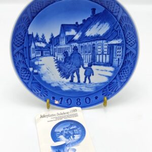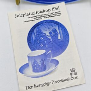 Винтажная рождественская тарелка Royal Copenhagen “Любуемся рождественской ёлкой” (Juletret beundres) 1981 года, редкая коллекционная модель с изображением матери и ребёнка, украшающих ёлку у окна,