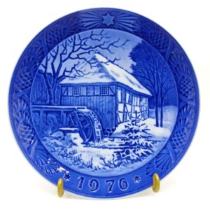Винтажная декоративная тарелка Royal Copenhagen Водяная мельница Вибэк (Vib k Vandm lle) 1976 года, редкая коллекционная модель с изображением старинной деревянной мельницы в зимнем пейзаже