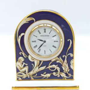 Винтажные настольные часы 1995 года. Wedgwood. Англия. Роскошный фарфор с позолотой и изображением ангелочка, размер 12х10 см, кварцевый механизм.