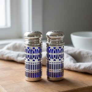 Винтажная солонка и перечница, серебрение и стекло кобальт. Elegance, Англия