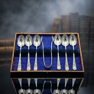 Антикварный немецкий набор “Флорентийский Вензель” чайные ложки и щипцы, 1950-е гг.