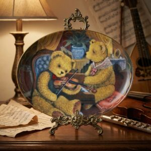 “Isnt it Romantic” – коллекционная фарфоровая тарелка Franklin Mint с танцующими медвежатами.