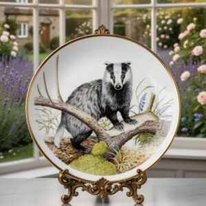 Декоративная тарелка Wedgwood “Барсук”, Коллекция Wildlife of Britain, художник Патрик А. Оксенхэм, фарфор с позолотой, ограниченный тираж 10000 экз., Англия, 23.5 см