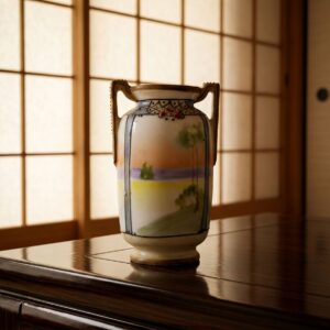 Антикварная миниатюрная фарфоровая вазочка с пейзажной росписью Noritake 8х5 см Япония 1920-1930 гг.