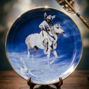 Декоративная коллекционная тарелка “Индеец. Дух зимнего ястреба”. Лимитированная серия Фарфор, деколь, золочение. США, мануфактура The Franklin Mint.