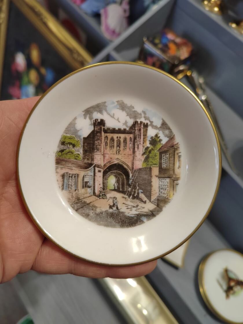 Винтажное фарфоровое блюдце для кодлера. Изготовлено в 20 веке из фарфора на мануфактуре Royal Worcester (на дне есть клеймо производителя). Сохранилось в прекрасном состоянии, без сколов и трещин. Украшено изображением города, дизайн «Достопримечательности Вустера». Имеет золотистую окантовку. Относиться к ограниченному выпуску. Диаметр 10см. Предназначено для использования в паре с кодлером, приготовления, подачи и употребления яиц пашот. Станет интересным дополнением сервировки стола. Все лоты выставлены на нескольких площадках поэтому, пожалуйста, перед покупкой уточняйте наличие.