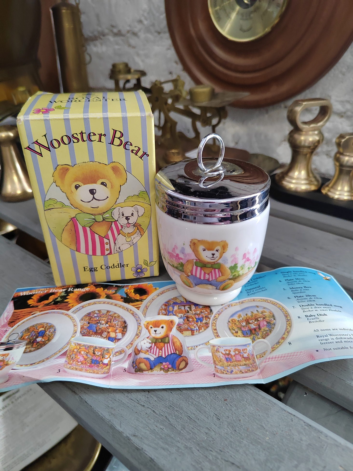 Редкий, большой английский кодлер предназначен для приготовления двух яиц. Имеет коллекционный узор «Wooster Bear». Так же носит название пашотница. Изготовлен в 20 веке из фарфора на мануфактуре Royal Worcester (на дне есть клеймо производителя). Английские кодлеры с откручивающейся крышкой являются редкостью, так как больше не производятся. Очень полезны в быту, в них можно готовить вареные яйца с различными наполнителями: ветчиной, курицей, зеленью, сыром и другими ингредиентами. Подаются к столу прямо вместе с ёмкостью и не нуждаются в дополнительной сервировке. Все лоты выставлены на нескольких площадках поэтому, пожалуйста, перед покупкой уточняйте наличие.
