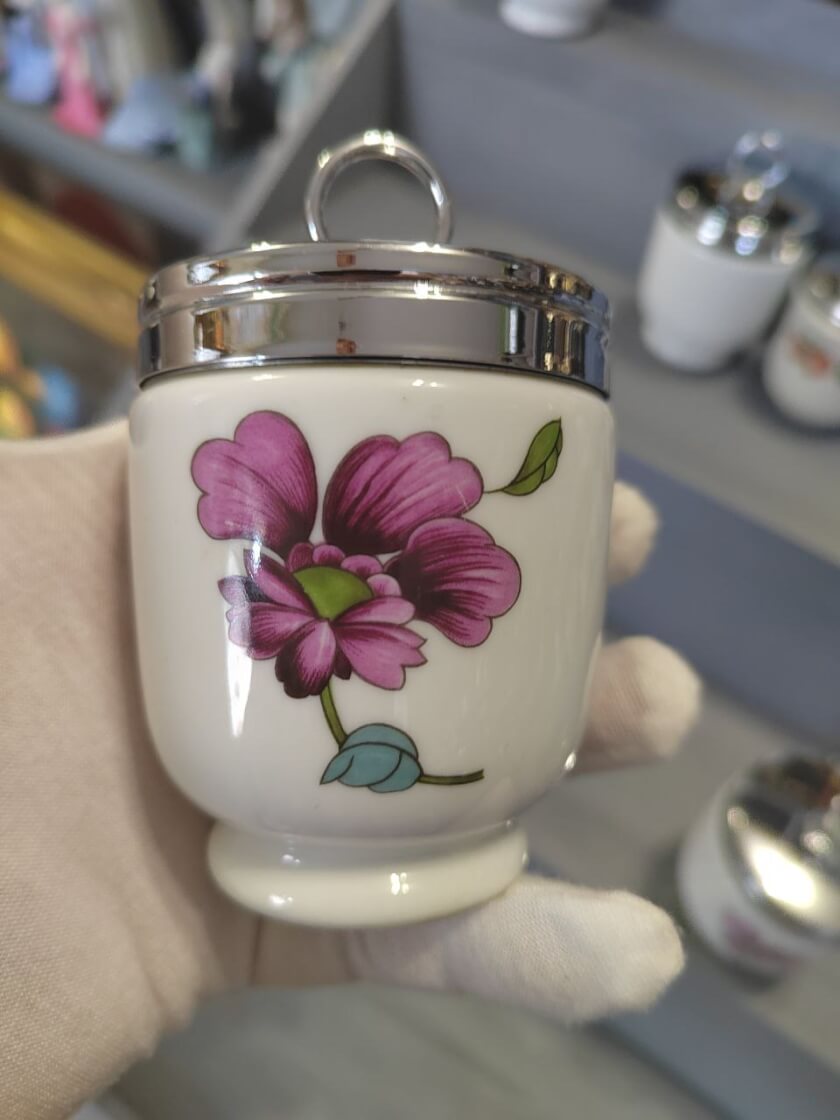 Редкий, большой английский кодлер предназначен для приготовления двух яиц. Так же носит название пашотница. Изготовлен в 20 веке из фарфора на мануфактуре Royal Worcester (на дне есть клеймо производителя). Имеет дизайн фиолетовых цветов. Английские кодлеры с откручивающейся крышкой являются редкостью, так как больше не производятся. Очень полезны в быту, в них можно готовить вареные яйца с различными наполнителями: ветчиной, курицей, зеленью, сыром и другими ингредиентами. Подаются к столу прямо вместе с ёмкостью и не нуждаются в дополнительной сервировке. Все лоты выставлены на нескольких площадках поэтому, пожалуйста, перед покупкой уточняйте наличие.