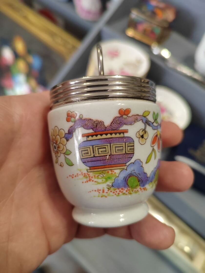 Редкий, большой английский кодлер предназначен для приготовления двух яиц. Так же носит название пашотница. Изготовлен в 20 веке из фарфора на мануфактуре Royal Worcester (на дне есть клеймо производителя). Имеет дизайн «Crown Ware». Английские кодлеры с откручивающейся крышкой являются редкостью, так как больше не производятся. Очень полезны в быту, в них можно готовить вареные яйца с различными наполнителями: ветчиной, курицей, зеленью, сыром и другими ингредиентами. Подаются к столу прямо вместе с ёмкостью и не нуждаются в дополнительной сервировке. Все лоты выставлены на нескольких площадках поэтому, пожалуйста, перед покупкой уточняйте наличие.