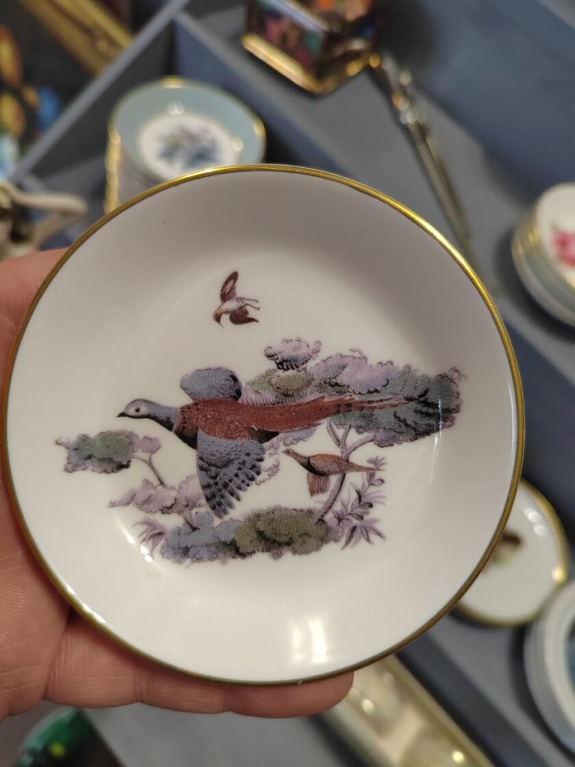 Винтажное фарфоровое блюдце для кодлера. Изготовлено в 20 веке из фарфора на мануфактуре Royal Worcester (на дне есть клеймо производителя). Сохранилось в прекрасном состоянии, без сколов и трещин. Украшено изображением птиц, дизайн «Охота». Имеет золотистую окантовку. Относиться к ограниченному выпуску. Диаметр 10см. Предназначено для использования в паре с кодлером, приготовления, подачи и употребления яиц пашот. Станет интересным дополнением сервировки стола. Все лоты выставлены на нескольких площадках поэтому, пожалуйста, перед покупкой уточняйте наличие.