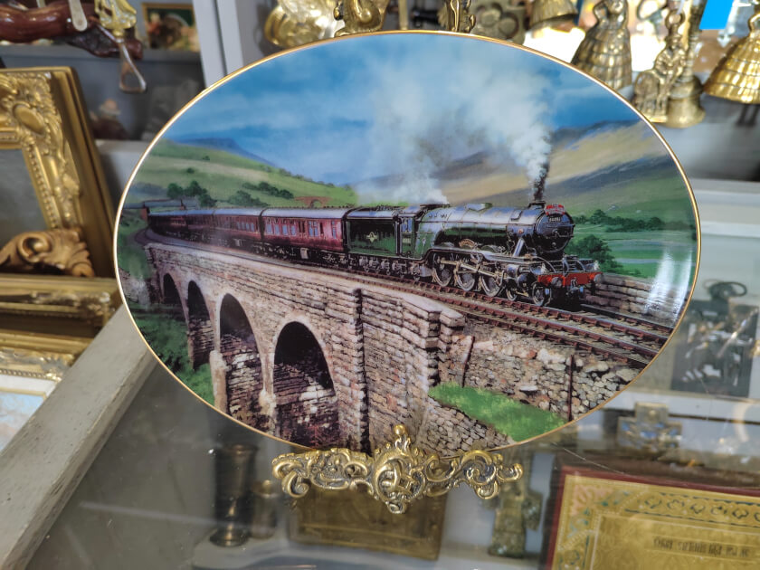 Винтажная декоративная тарелка с изображением железной дороги и поезда. Носит название “Gainsborough”. Относится к серии “Valleys and Viaducts”. Создана в Англии во второй половине 20 века. Произведена из костяного фарфора на мануфактуре Davenport. Выпущена тиражом, ограниченным 75 днями обжига. Занесена в каталог бренда. Имеет уникальный порядковый номер. Изображение художника Jon Aus Tin. Стоит клеймо от производителя. Тарелка сохранилась в прекрасном состоянии, без сколов и трещин. Станет интересным элементом декора интерьера или частью коллекции. Все лоты выставлены на нескольких площадках поэтому, пожалуйста, перед покупкой уточняйте наличие.