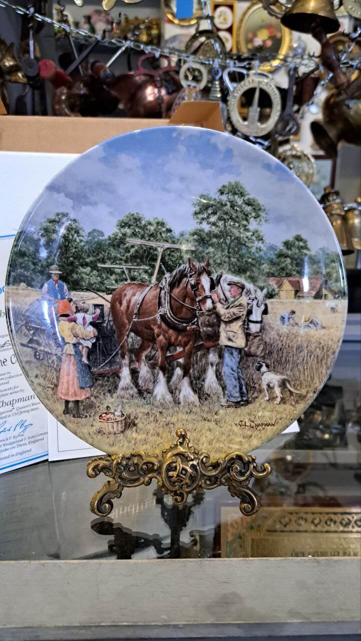 Декоративная коллекционная тарелка с изображением деревни. Создана в Англии фирмой Wedgwood. Произведена из фарфора в 1989 году. Выпущена тиражом, ограниченным 150 днями обжига. Занесена в каталог бренда, имеет уникальный порядковый номер. Носит название «Сбор кукурузы». Относится к серии «Жизнь на ферме». Оригинал рисунка создан художником John L. Chapman. Идёт в комплекте с сертификатом подлинности и родной коробкой. Станет интересным элементом декора интерьера или частью коллекции. Все лоты выставлены на нескольких площадках поэтому, пожалуйста, перед покупкой уточняйте наличие.