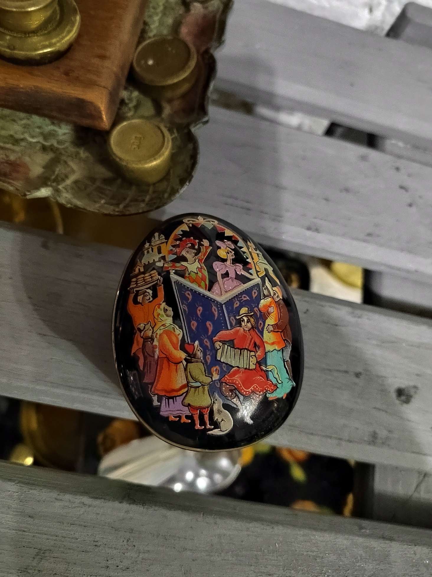 Винтажная музыкальная шкатулка из костяного фарфора. Произведена в 1988 году на мануфактуре Франклин Минт (Franklin Mint). Носит название «Петрушка», относится к коллекции «Русский балет». Выпущена ограниченным тиражом. Заводиться ключом во внутренней части. Клеймо от производителя на основании. Сохранилась в отличном состоянии. Винтажная шкатулка станет восхитительным украшением туалетного или прикроватного столика, прекрасным подарком или частью коллекции. Все лоты выставлены на нескольких площадках поэтому, пожалуйста, перед покупкой уточняйте наличие.