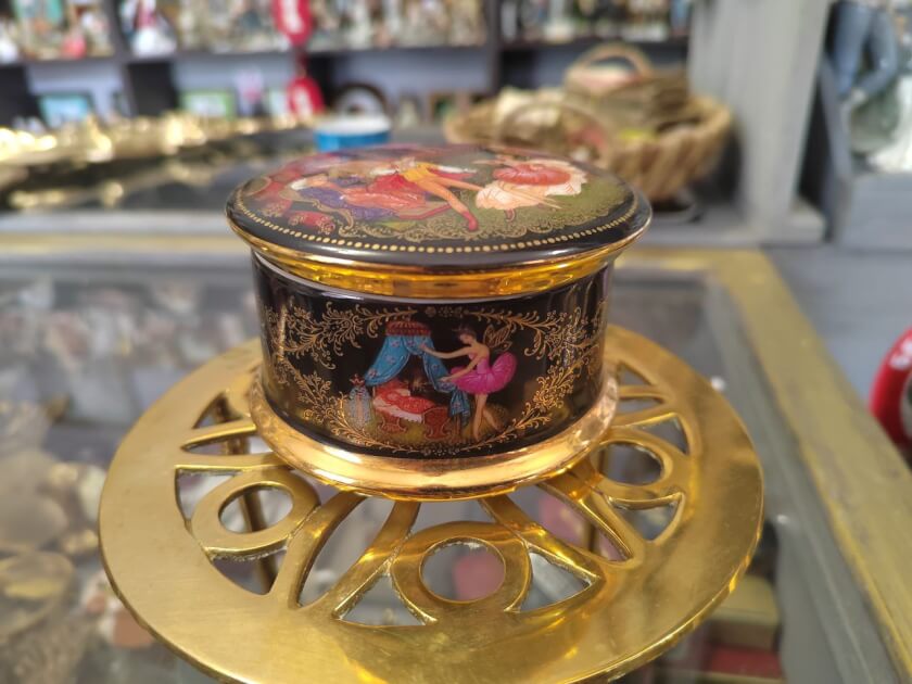Винтажная коллекционная музыкальная шкатулка из костяного фарфора. Относится к серии “Русский балет”. Носит название “Спящая красавица”. Произведена в Англии на мануфактуре Ardleigh Elliott and Sons в 1992 году. Создана художником Натальей Зайцевой. Выпущена тиражом, ограниченным 100 днями обжига. Музыка Петра Ильича Чайковского из балета “Спящая красавица”. Шкатулка сохранилась в прекрасном состоянии. Имеет уникальный порядковый номер. Занесена в каталог бренда. Станет интересным элементом декора интерьера или частью коллекции. Все лоты выставлены на нескольких площадках поэтому, пожалуйста, перед покупкой уточняйте наличие.
