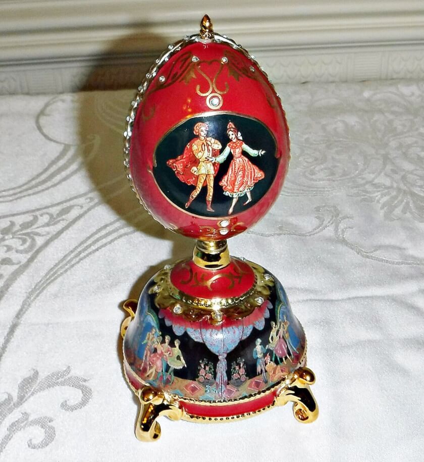 Прекрасная коллекционная музыкальная шкатулка. Произведена в Англии в 2004 году из костяного фарфора. Носит название «Балет Щелкунчик», относится к коллекции «Русского Балета». Выпущена ограниченным тиражом и занесена в каталог бренда. Имеет личный порядковый номер, указанный на основании. Внешне оформлена в виде яйца Фаберже. Шкатулка заводится ключом во внутренней части. Станет великолепным украшением интерьера, которое своей грациозностью никого не оставит равнодушным. Все лоты выставлены на нескольких площадках поэтому, пожалуйста, перед покупкой уточняйте наличие.