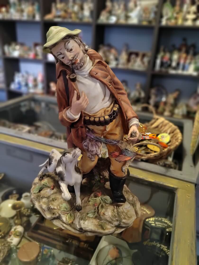 Винтажная статуэтка от знаменитой фарфоровой мануфактуры Каподимонте (Capodimonte). Создана из оригинального костяного фарфора. Произведена и раскрашена вручную художником Carpie. Клеймо мануфактуры и подпись автора на основании. Статуэтка изображает охотника с ружьём и собакой. Фигурка сохранилась в прекрасном состоянии, без сколов и трещин. Станет восхитительным элементом декора интерьера или частью коллекции. Все лоты выставлены на нескольких площадках поэтому, пожалуйста, перед покупкой уточняйте наличие.