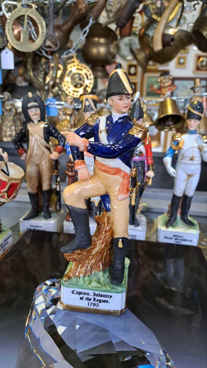 Коллекционная фигурка офицера из армии Наполеона Бонапарта. Создана из глянцевого костяного фарфора. Произведена в Англии в середине 20 века. Сохранилась в прекрасном состоянии, без сколов и трещин. Детально передает образ и одежду офицера в звании «Капитан Легиона» из Армии Наполеона Бонапарта времён 1795 — 1815 годов. Станет интересным элементом декора интерьера или частью коллекции в тематике наполеоновских войн. Основание статуэтки подписано званием и годом. Все лоты выставлены на нескольких площадках поэтому, пожалуйста, перед покупкой уточняйте наличие.