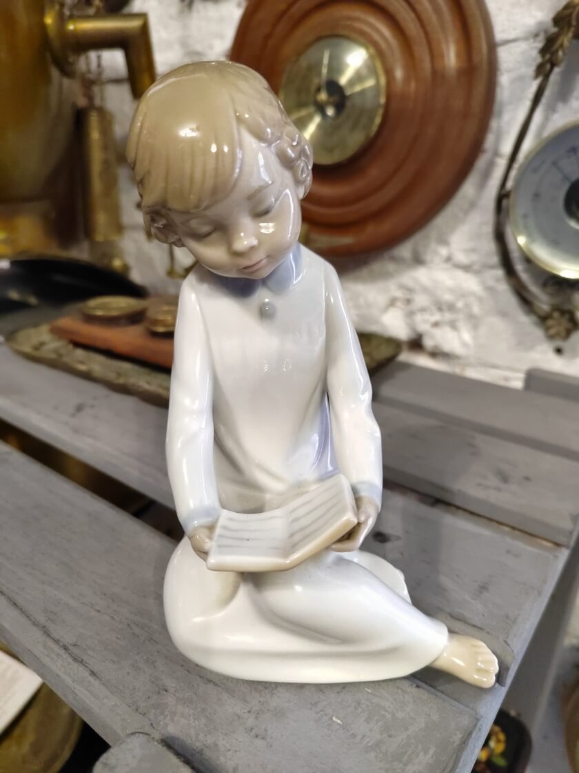 Винтажная фарфоровая статуэтка мальчика с книгой. Произведена фирмой Nao Lladro в Испании в 1980-х годах. Клеймо от производителя на основании. Выполнена в бежевых, белых и голубых цветах. Создана и разукрашена вручную. Изделия Nao считаются лучшими от производителя Lladro, эти фигурки отличаются особой тонкостью и изяществом. Статуэтка в прекрасном состоянии, без сколов и трещин, станет интересным элементом декора или хорошим подарком для коллекционера. Все лоты выставлены на нескольких площадках поэтому, пожалуйста, перед покупкой уточняйте наличие.
