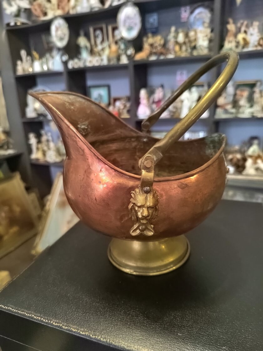 Небольшой зольник для камина. Зольник — аксессуар, с помощью которого легко очистить камин или печь от углей и золы. С двух сторон украшен объёмными львиными головами. Создан в Англии в середине 20 века из меди. С его помощью можно удалить всю золу и угли за один раз. Снабжён ручкой для удобства использования и переноса. Надёжные крепления и качество спайки обеспечат износостойкость зольника. Практичное винтажное изделие, которое прослужит долгие годы. Все лоты выставлены на нескольких площадках поэтому, пожалуйста, перед покупкой уточняйте наличие.