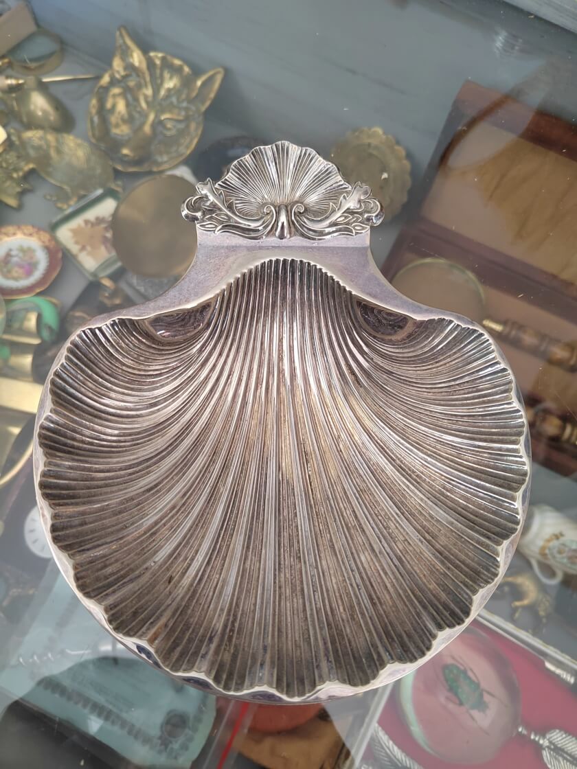 Старинная икорница первой половины 20 века. Создана в Англии на мануфактуре S.G. Покрыта стойким серебрением. Клеймо от производителя на оборотной стороне. Оформлена в виде ракушки с рельефным узором. Стоит на трех невысоких ножках. Сохранилась в прекрасном состоянии. Может активно использоваться в быту по назначению для подачи и употребления икры и морепродуктов. Станет интересным и функциональным дополнением сервировки стола и кухонного декора. Все лоты выставлены на нескольких площадках поэтому, пожалуйста, перед покупкой уточняйте наличие.