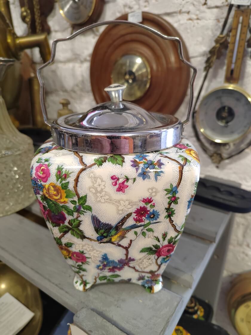 Винтажная фарфоровая Бисквитница от английского бренда Midwinter. Нанесено стойкое серебрение. Ручная роспись — нежный узор цветов и птиц. Дизайн носит название «Brama». Бисквитница — баночка с крышкой и ручкой для хранения печенья, вафель, конфет, выпечки и всех возможных вкусностей. В закрытой ёмкости сладости не засыхают и не набирают неприятный запах. Старинная бисквитница с утончённым узором украсит интерьер кухни и добавит изыска в обстановку. Сохранилась в прекрасном состоянии. Все лоты выставлены на нескольких площадках поэтому, пожалуйста, перед покупкой уточняйте наличие.