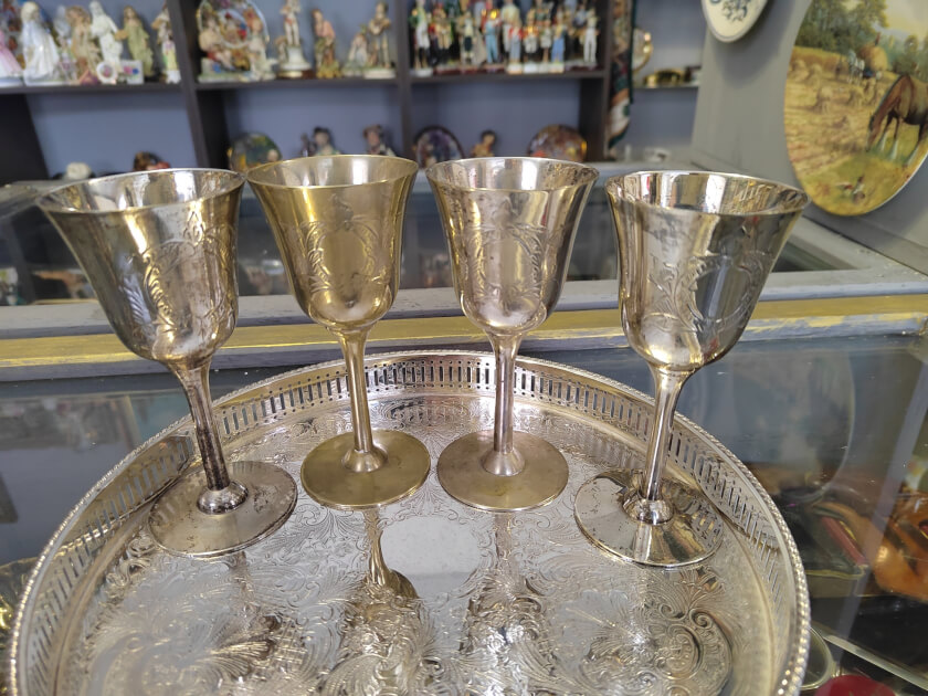 Винтажный комплект из 4 кубков / бокалов. Произведен в первой половине 20 века в Англии. Клейма от производителя на основании. Кубки покрыты стойким серебрением. Украшены глубоким резным узором цветов и листьев. Форма бокалов / кубков подходит для вина и коктейлей. Винтажный комплект станет восхитительным дополнением сервировки стола, привнесет шика и элегантности. Прекрасный подарок для ценителя качественных алкогольных напитков. Все лоты выставлены на нескольких площадках поэтому, пожалуйста, перед покупкой уточняйте наличие.