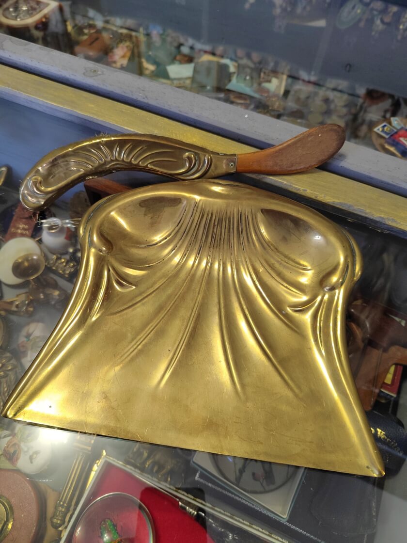 Винтажный набор для уборки, состоящий из совка и щетки. Инструменты созданы в Англии в первой половине 20 века. Изготовлены из латуни, украшены цветочными узорами. Щётка произведена из натурального лошадиного волоса. Набор многофункциональный: может использоваться для уборки на столе, полках, мебели, полу, щётка может применяться для чистки обуви. Комплект в прекрасном состоянии, удобен и незаменим в быту. Все лоты выставлены на нескольких площадках поэтому, пожалуйста, перед покупкой уточняйте наличие.