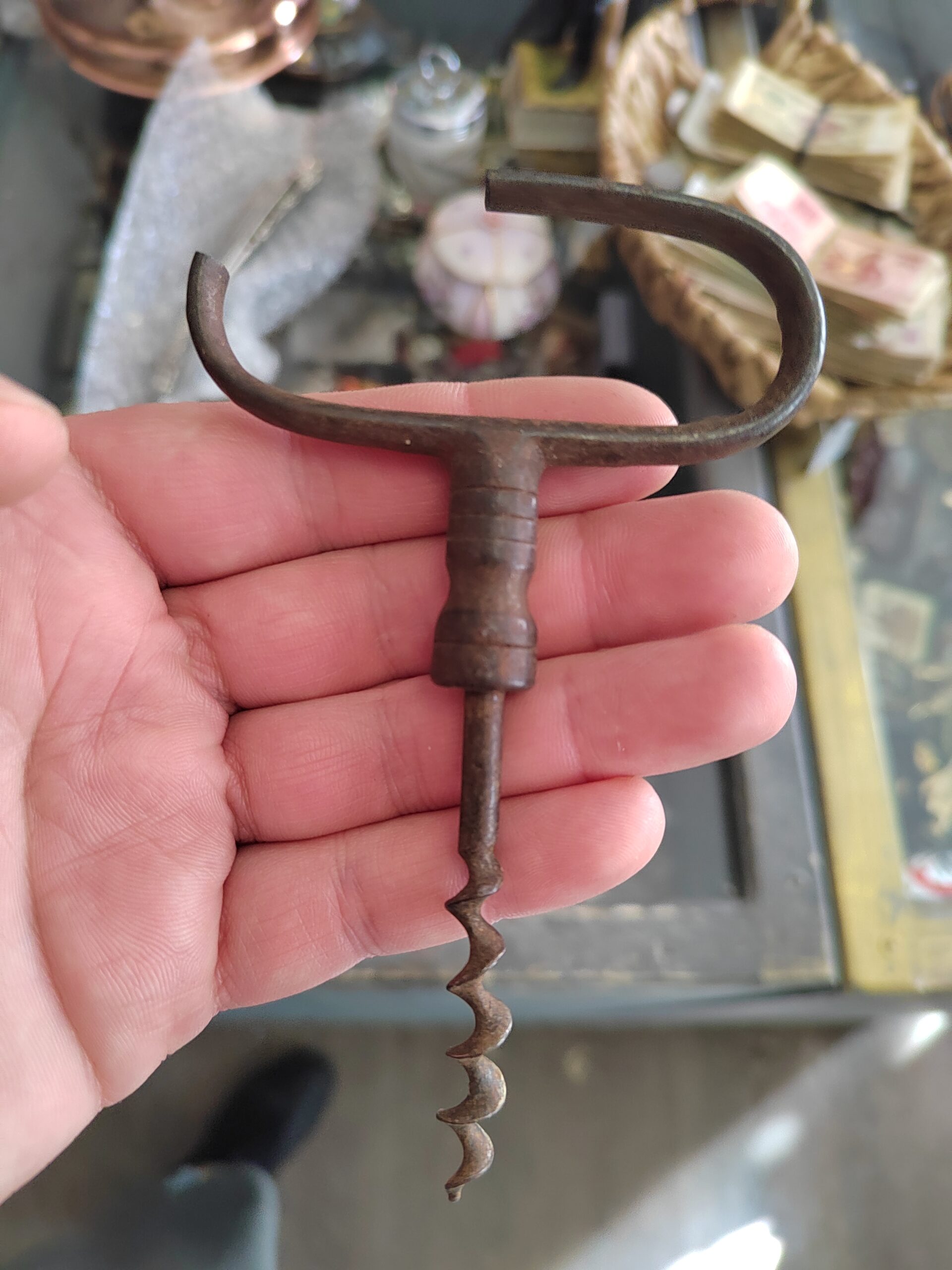 Великолепный коллекционный кованый штопор. Произведен в первой половине 20 века в Англии. Оформлен классическим винтом. Рукоятка создана в форме широкого кольца. Может применяться по назначению. Ручной штопор – оригинальный винтажный кухонный прибор. Станет интересным элементом в интерьере кухни или загородного дома. Будет приятным подарком для мужчины, охотника, рыболова, коллекционера. Имеет незначительный дефект, поэтому продается по сниженной цене. Все лоты выставлены на нескольких площадках поэтому, пожалуйста, перед покупкой уточняйте наличие.