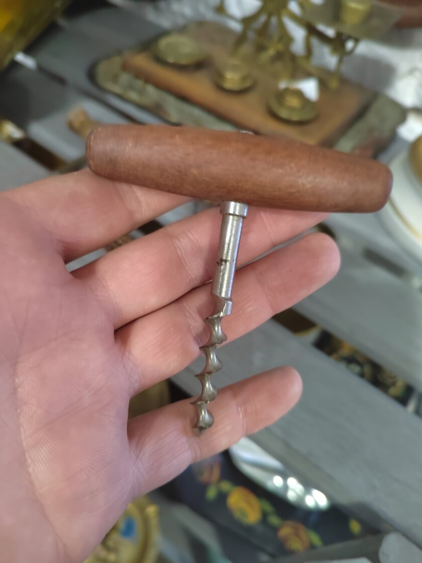 Великолепный коллекционный кованый штопор. Произведен в первой половине 20 века в Англии. Оформлен классическим винтом. Рукоятка создана из светлого дерева. Штопор сохранился прекрасном состоянии. Может применяться по назначению. Ручной штопор – оригинальный винтажный кухонный прибор. Станет интересным элементом в интерьере кухни или загородного дома. Будет приятным подарком для мужчины, охотника, рыболова, коллекционера. Все лоты выставлены на нескольких площадках поэтому, пожалуйста, перед покупкой уточняйте наличие.