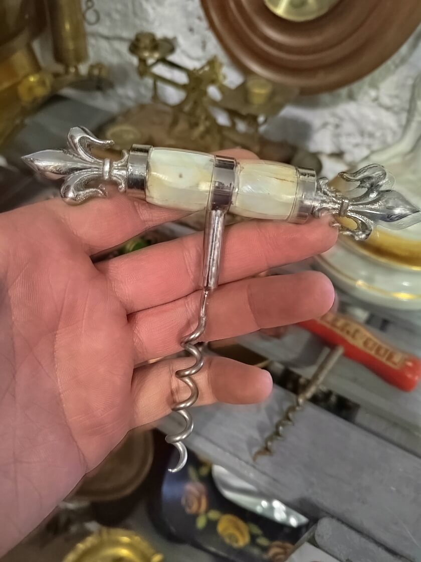 Великолепный редкий коллекционный штопор. Произведен в первой половине 20 века в Англии. Оформлен классическим винтом. Рукоятка создана из белого мрамора и украшена объёмными пиками по бокам. Штопор сохранился прекрасном состоянии. Может применяться по назначению. Ручной штопор — оригинальный винтажный кухонный прибор. Станет интересным элементом в интерьере кухни или загородного дома. Будет приятным подарком для мужчины, охотника, рыболова, коллекционера. Все лоты выставлены на нескольких площадках поэтому, пожалуйста, перед покупкой уточняйте наличие.