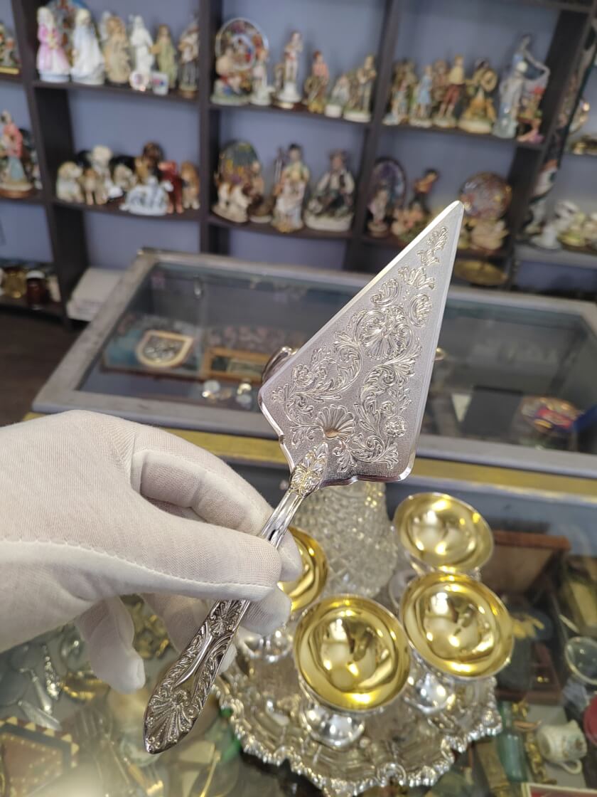 Изысканная винтажная лопатка для раздачи десертов и тортов. Произведена в Англии в середине 20 века. Покрыта стойким серебрением. Сохранилась в прекрасном состоянии, блестит, не была в использовании. Украшена разнообразными резными цветочными и витиеватыми узорами. Станет восхитительным элементом сервировки стола к приему гостей или прекрасным подарком для хозяйки. Незаменима в быту для любителей выпечки. Все лоты выставлены на нескольких площадках поэтому, пожалуйста, перед покупкой уточняйте наличие.