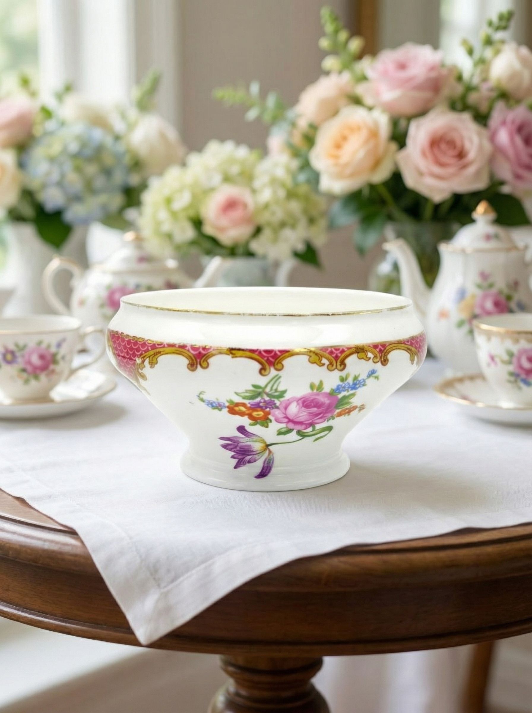 Винтажная сахарница Aynsley размером 12×7 см выполнена из тонкого костяного фарфора и украшена ярким цветочным декором с позолотой. Изящная форма и насыщенная роспись создают атмосферу классического английского чаепития. Отличается высоким качеством исполнения и аккуратной детализацией. Прекрасно подойдёт для сервировки или коллекции. Состояние отличное.