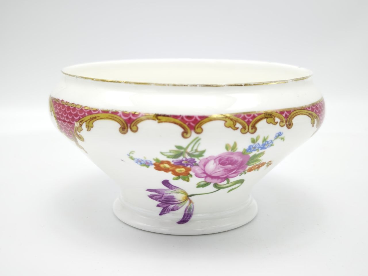 Английская сахарница “Розовый венок” Aynsley, костяной фарфор, позолота, 1970-е гг.