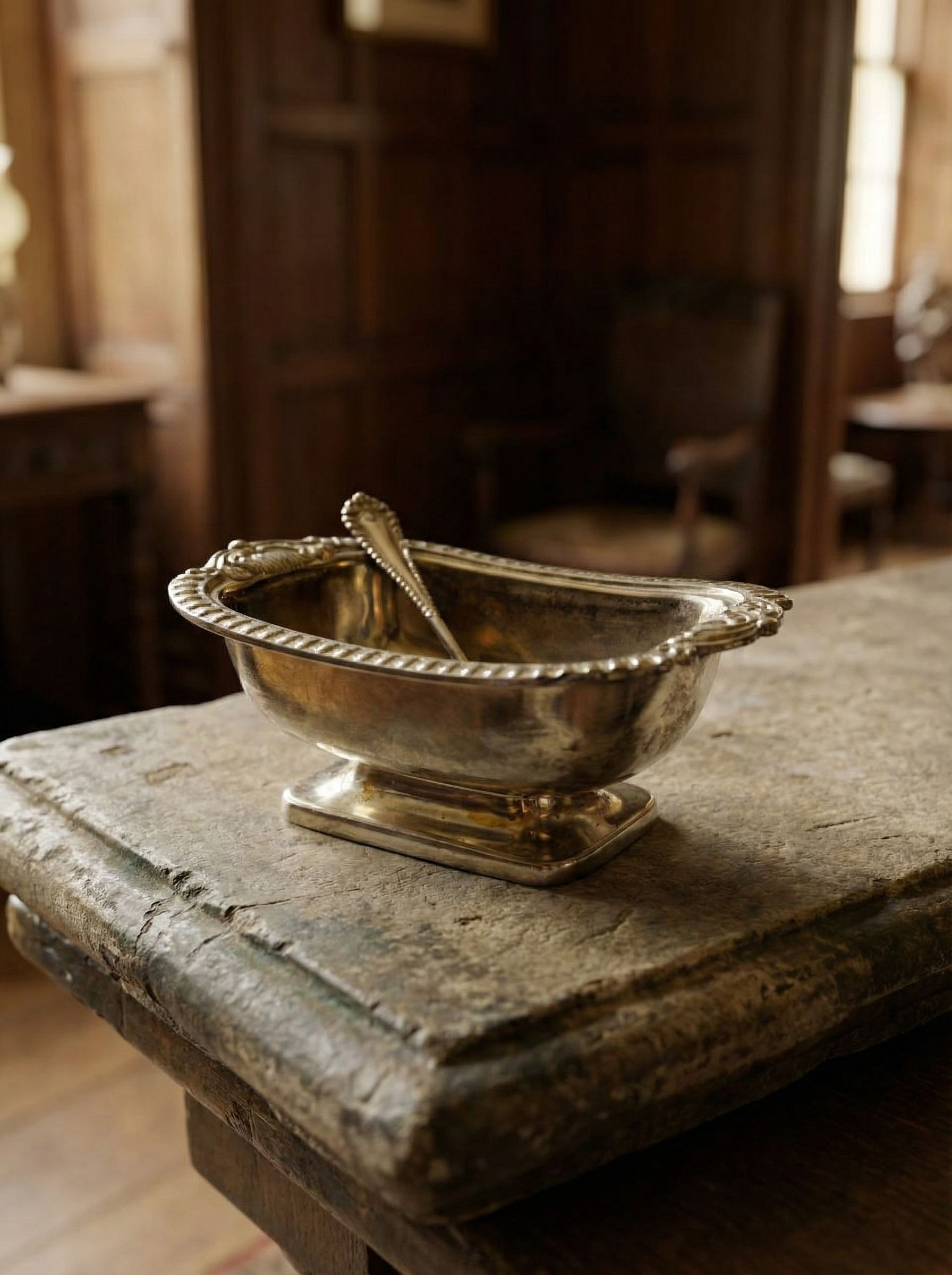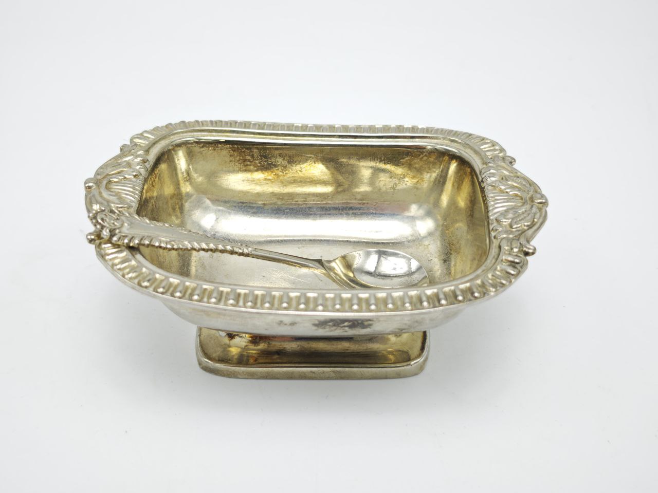 Элегантная антикварная солонка с ложечкой, выполненная в классическом английском стиле. Компактная, но выразительная по форме, она создана для индивидуальной сервировки и занимает минимум места на столе — формат солонки 10 × 7 × 3,5 см соответствует традициям английского быта середины XX века. Серебрение придаёт предмету благородный блеск и подчёркивает его статусность. Тонкая ложечка длиной 8 см идеально соразмерна чаше, благодаря чему весь комплект выглядит гармонично и завершённо. Подобные солонки использовались в английских домах как обязательный элемент чайного и обеденного стола. Прекрасный выбор для коллекционеров, ценителей винтажной сервировки и атмосферного интерьера.