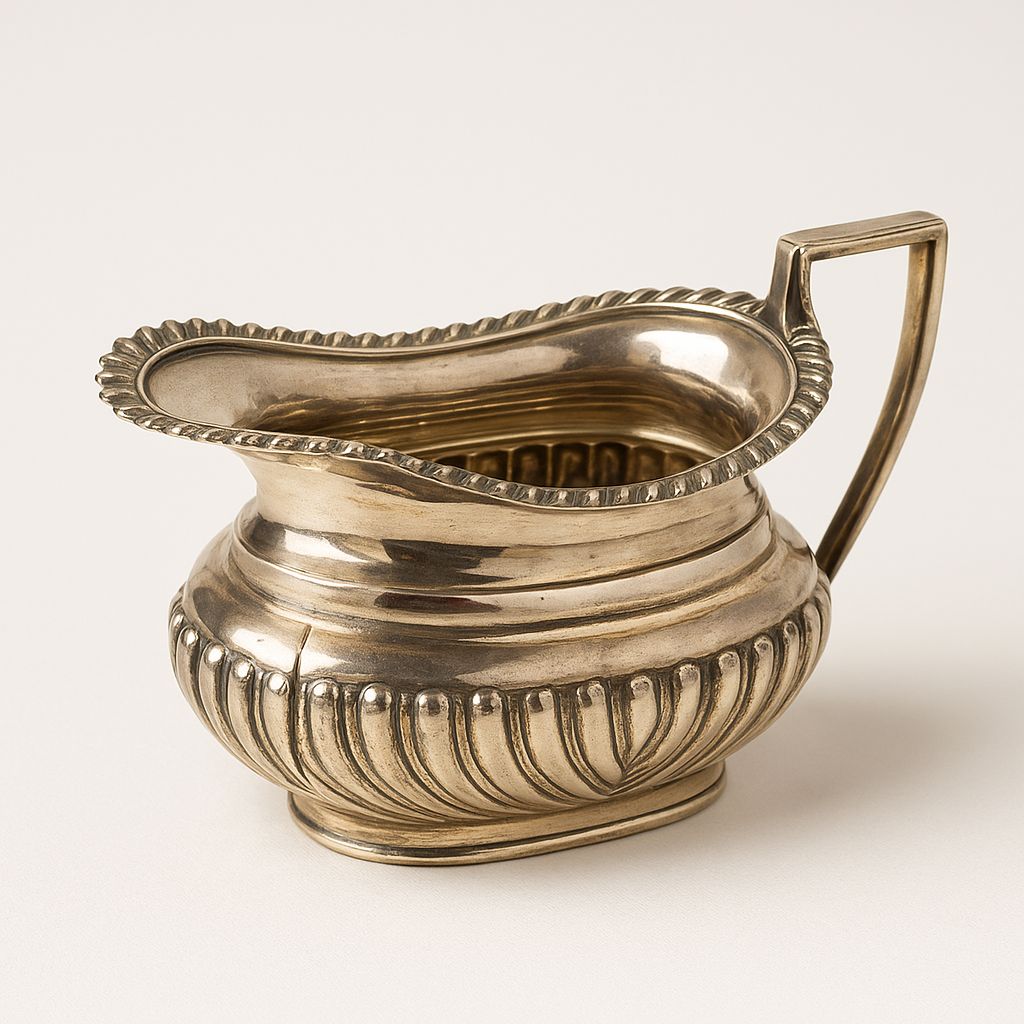 Редкий сливочник от легендарной британской фирмы Mappin & Webb, известной своими ювелирными и столовыми изделиями. Изготовлен в Англии, в 1920-е годы. Тяжёлое посеребрение, изящные рельефные узоры и благородная патина придают предмету особый шарм. Такой аксессуар станет жемчужиной коллекции или изысканным акцентом для сервировки стола в винтажном стиле.