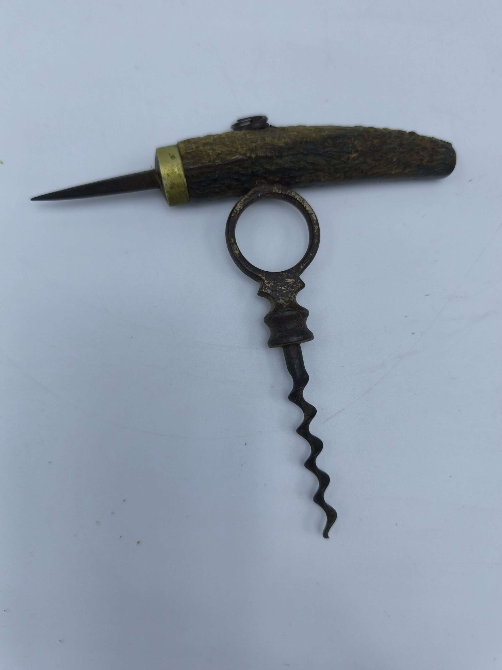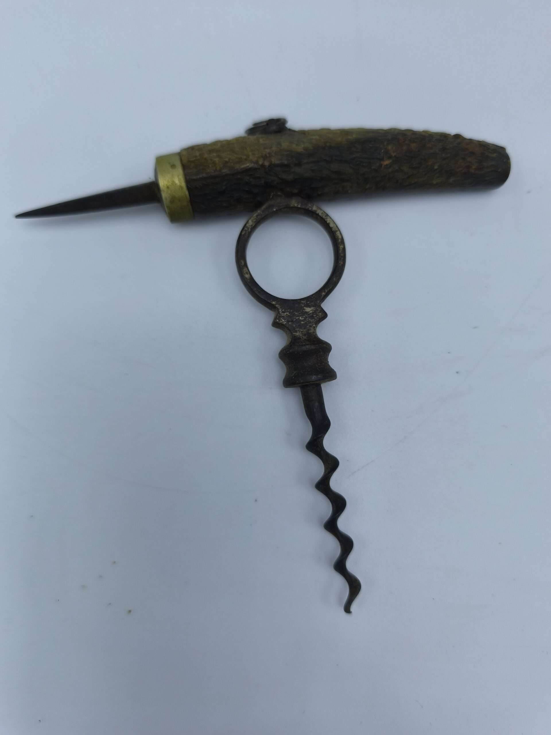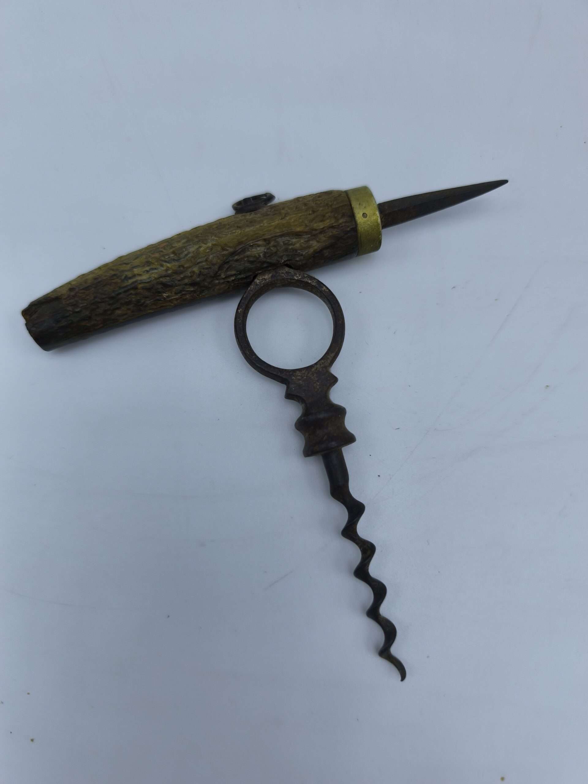 **Редкий старинный кованый штопор с троакаром** — уникальный предмет антиквариата, выполненный вручную из прочного кованого металла. Этот редкий штопор отличается своей долговечностью и изысканной ручной работой. Особенность этого изделия — встроенный троакар, использовавшийся в прошлом для пробития живота у овец и других животных, а также для вскрытия желудков и проведения различных хозяйственных процедур. Такой инструмент не только служил для практических целей, связанных с сельским хозяйством, но и являлся интересным и редким экспонатом. Эта модель сочетает в себе функциональность и историческую ценность, делая ее ценным предметом для коллекционеров антиквариата и ценителей истории. Такой штопор — прекрасное дополнение любой коллекции ретро-предметов или интерьеру с атмосферой прошлого.