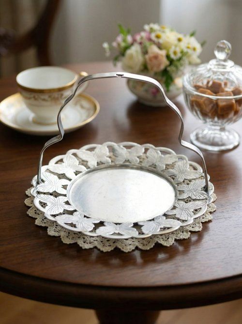 Серебрёная вазочка для конфет изготовлена в Англии в 1910 году. Ажурный край выполнен в виде изящных бабочек, образующих воздушный декоративный венец, а центральная чаша подчёркнута гладким зеркальным полем. Высота 11,5 см, диаметр 15 см, вес предмета 180 г. Элегантная ручка делает подачу сладостей особенно эффектной — предмет красиво смотрится как в классической сервировке, так и в витрине коллекции.