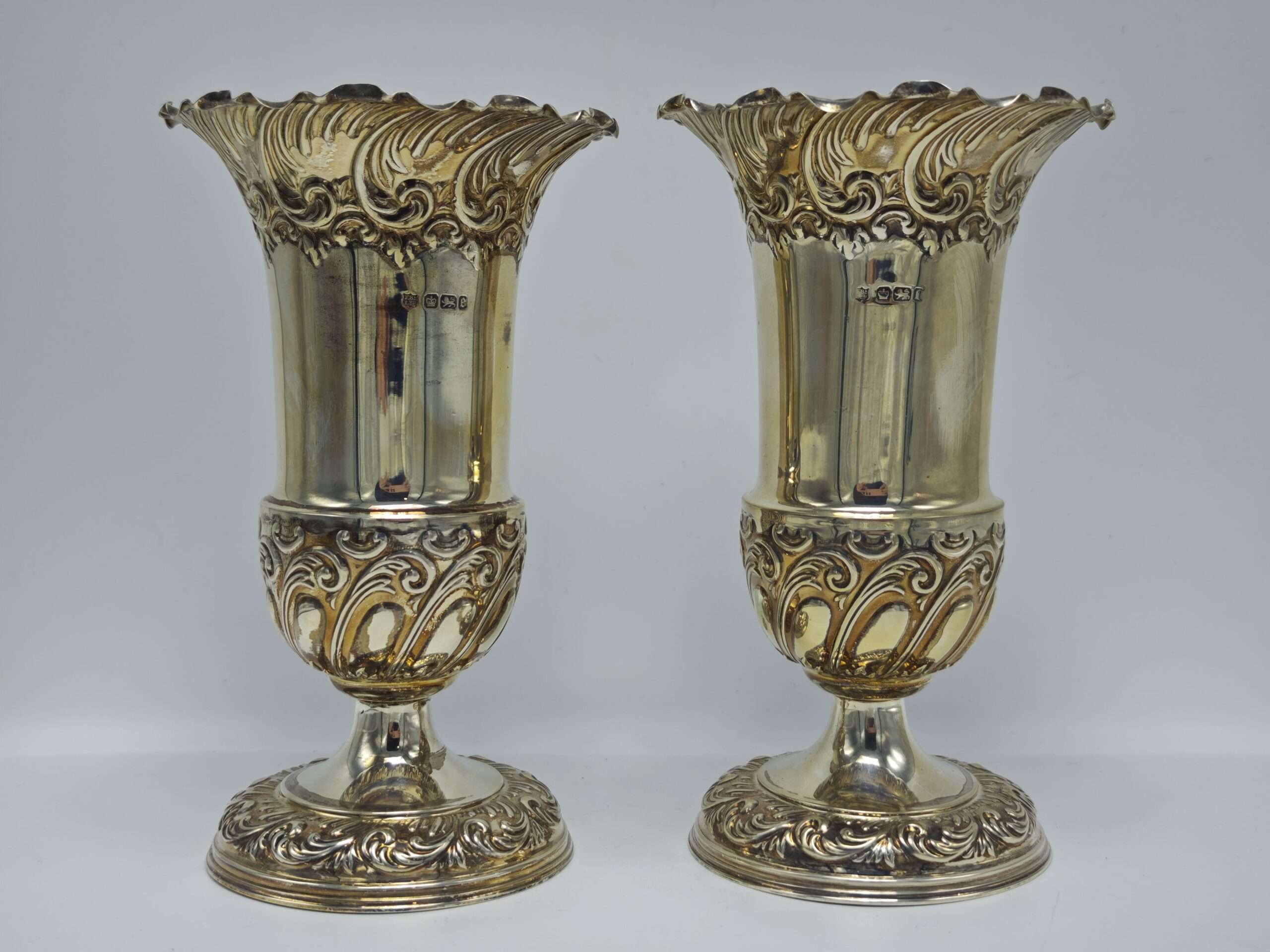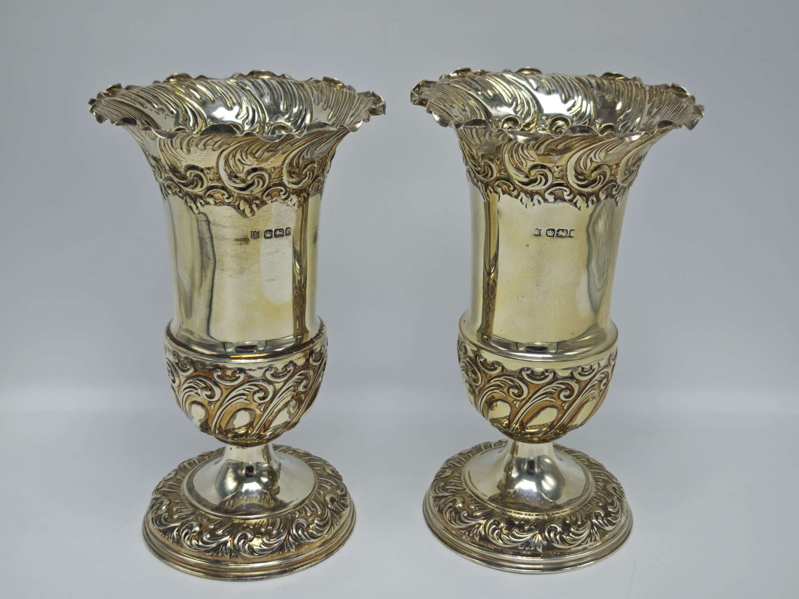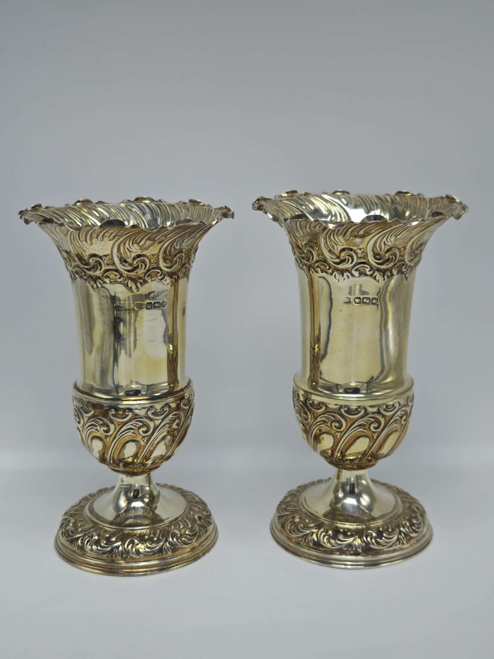 Антикварные парные вазы для цветов, серебро. Англия конец 19 века. Клейма