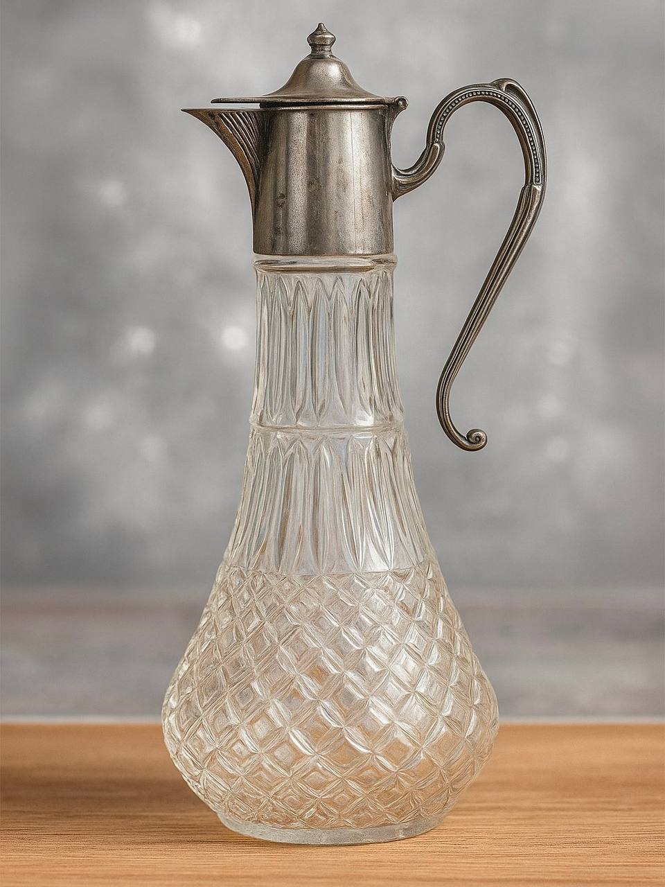 На этом изделии сошлись красота и функциональность! Английский винтажный декантер – безупречный пример сервировочной посуды 19-20 века. Металлическая верхняя часть с серебрением наделяет этот кувшин элегантным стилем: аккуратный носик, украшенная гравировками крышка и тонкая, но прочная ручка демонстрируют высокую приверженность традиционным ремёслам. Резное стекло составляет основную часть декантера, его узор имеет уникальный орнаментальный рисунок, который притягивает взгляд. Этот кувшин может использоваться не только для подачи вина, но также для воды, сока или других напитков. Удачное сочетание утонченности и универсальности делает этот винтажный предмет идеальным дополнением к роскошной сервировке любого стола. Он также может стать ключевым элементом винного бара или зоны дегустации напитков на мероприятии, добавляя им атмосферы прошлого.