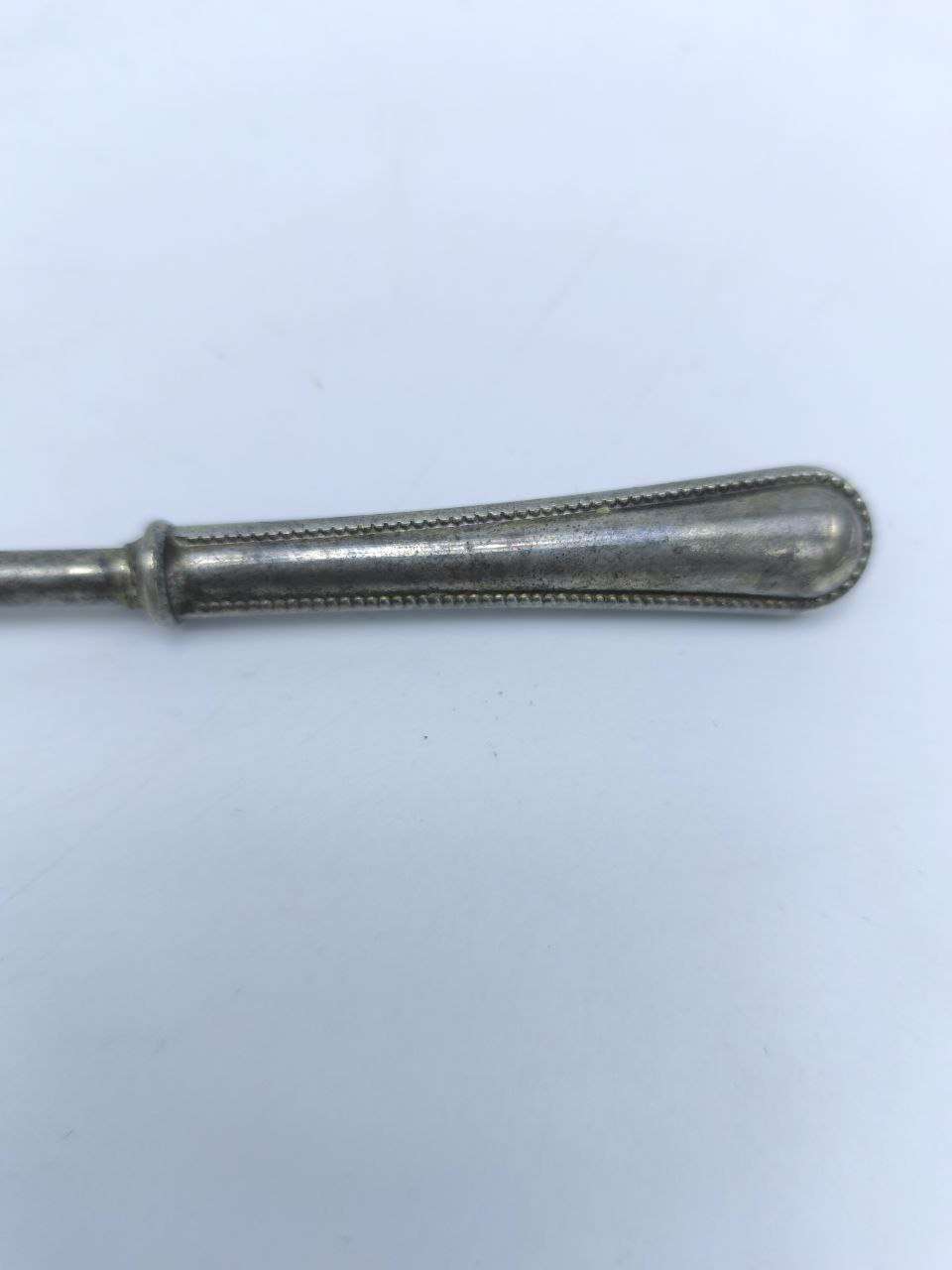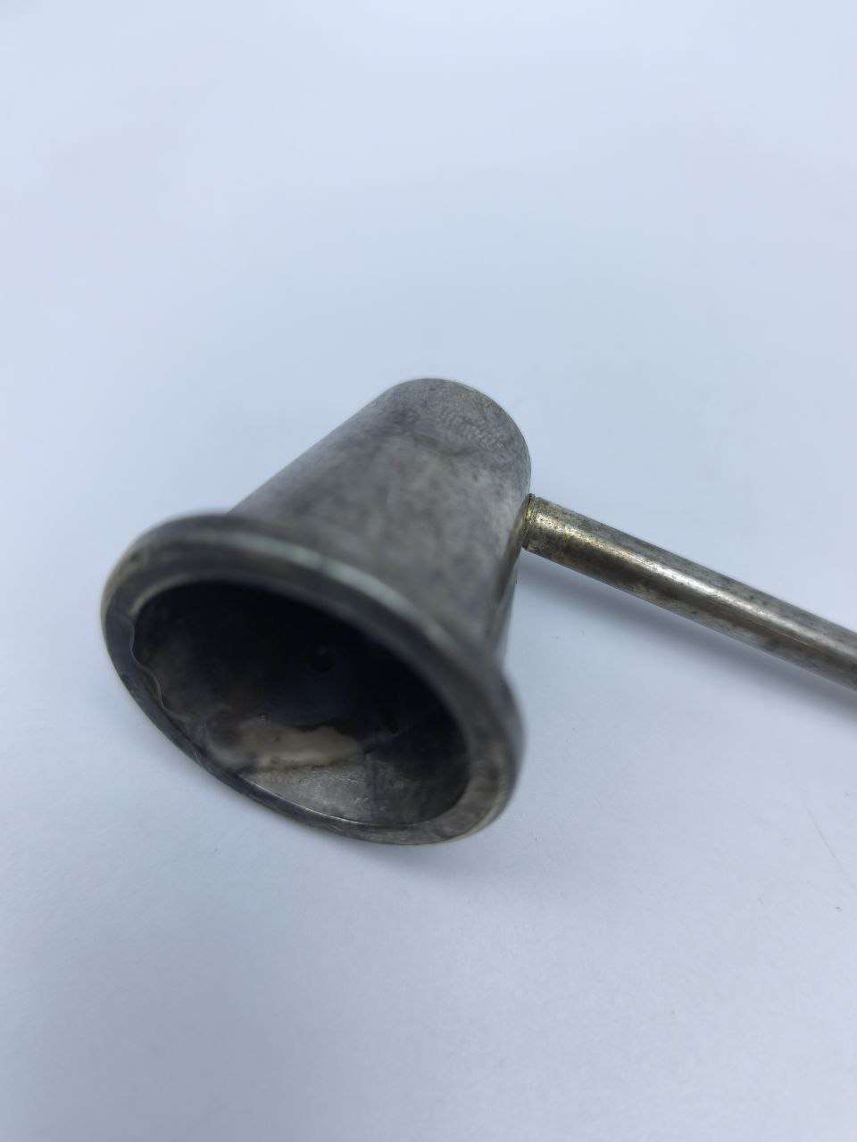 Винтажный гаситель для свечей с длинной ручкой и коническим колпачком — утончённый аксессуар, сочетающий функциональность и эстетику. Предположительно изготовлен в Англии в середине XX века из посеребрённого металла. Этот антикварный предмет позволит аккуратно погасить пламя, сохранив аромат и форму свечи, а также станет стильным элементом сервировки или декора.