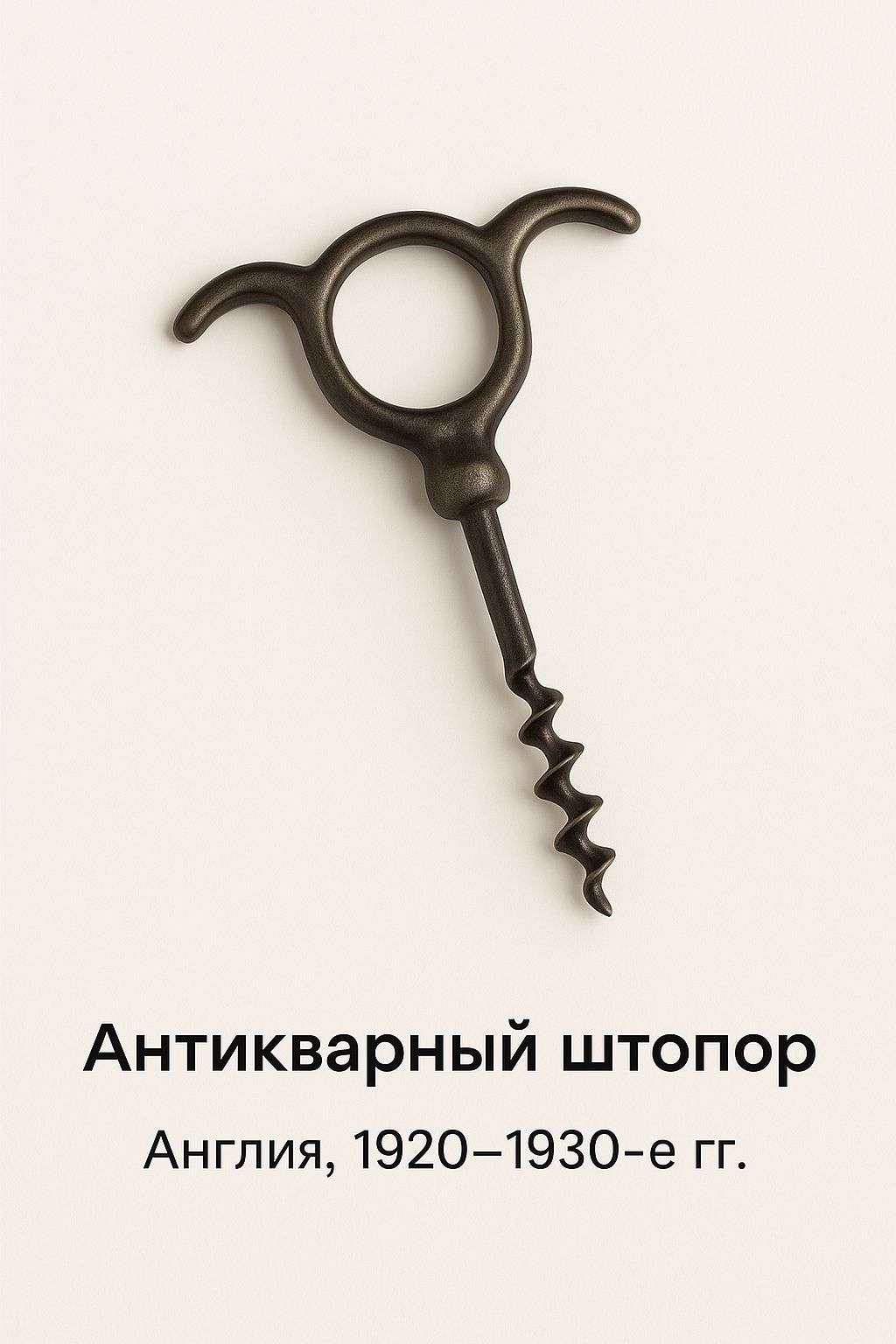 Изготовленный в Англии в 1920–1930-х годах, этот штопор выполнен из прочной стали и отличается лаконичным, но удобным дизайном. Рукоять в форме «рогов» обеспечивает комфортный захват, а патинированный тёмно-серый металл придаёт изделию особое винтажное очарование. Идеальный предмет для коллекционеров антиквариата и ценителей исторической кухонной утвари.