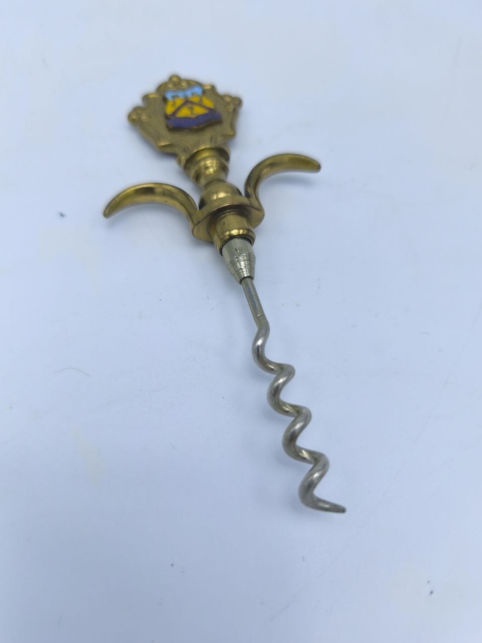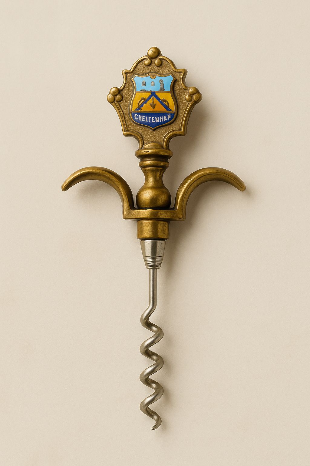 Редкий коллекционный штопор с гербом города Челтнем (Англия), выполненный из латуни с эмалированным щитом. Его изысканный дизайн и качественная ручная работа делают предмет не только утилитарным аксессуаром, но и настоящим элементом истории. Подобные сувенирные штопоры изготавливались в середине XX века, и сегодня они особенно ценятся среди коллекционеров антиквариата и любителей винной культуры.