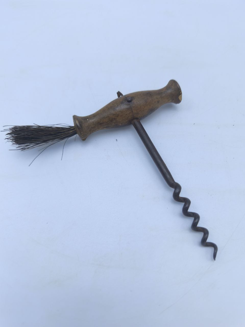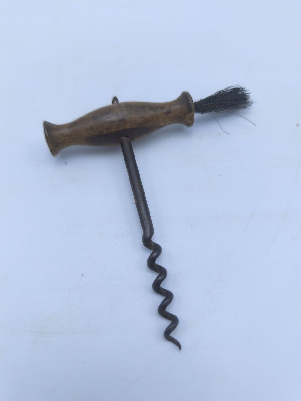 Редкий винный штопор с деревянной ручкой в форме рыбы и встроенной кисточкой для очистки горлышка бутылки.Изготовлен во Франции в 1920–е гг., эпоху изысканных аксессуаров для винных ритуалов.Металлический винт кован вручную, а гладкая патинированная поверхность дерева придаёт изделию особый характер.Этот штопор станет ярким элементом коллекции и стильным подарком для ценителей антикварной утвари.