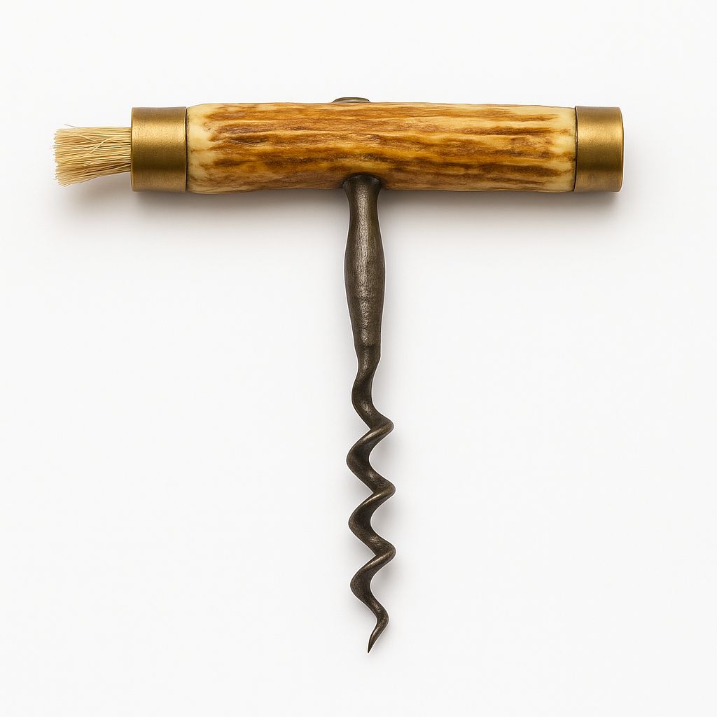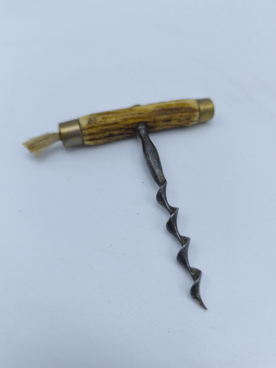 Редкий английский штопор конца XIX – начала XX века, выполненный в Шеффилде — городе, известном своими мастерами по металлу. Ручка из натурального рога с латунными накладками придаёт предмету аутентичный характер. Встроенная кисточка для очистки пробки делает штопор не только коллекционной редкостью, но и функциональной деталью винной культуры. Прекрасное дополнение к коллекции антикварных аксессуаров или подарок ценителю вина.