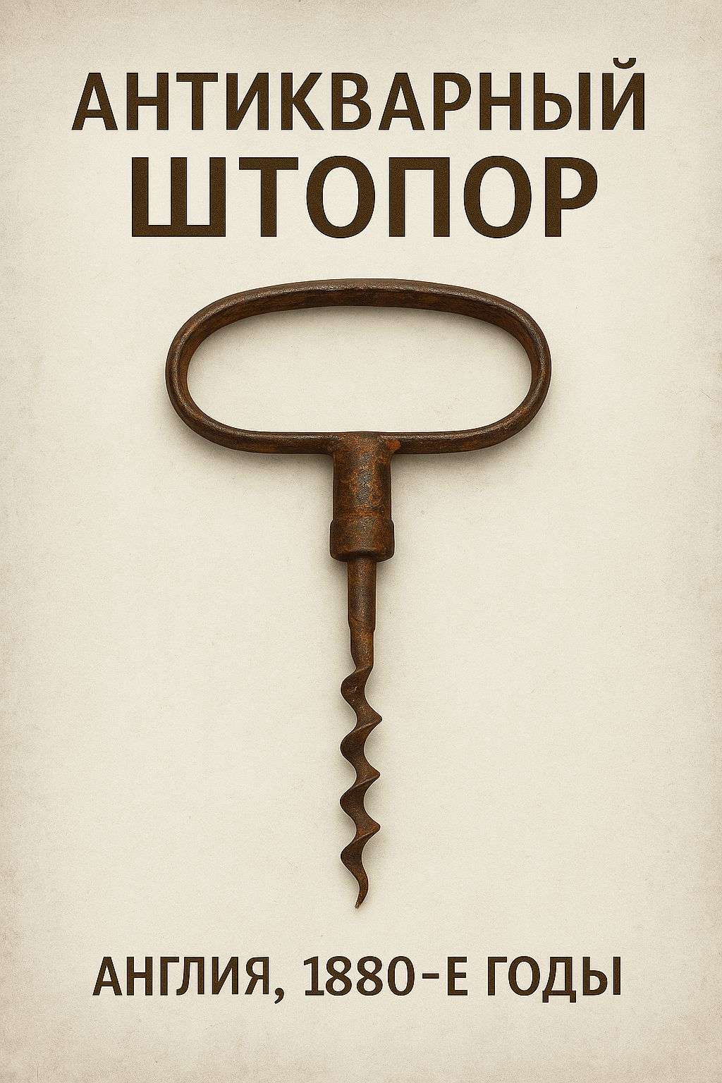 Антикварный штопор с овальной рукоятью, изготовленный в Великобритании во второй половине XIX века.Классическая викторианская форма и оригинальная патина металла делают его не только функциональным инструментом, но и настоящим предметом коллекционерской ценности.Идеально подойдёт для ценителей винной культуры и антиквариата.
