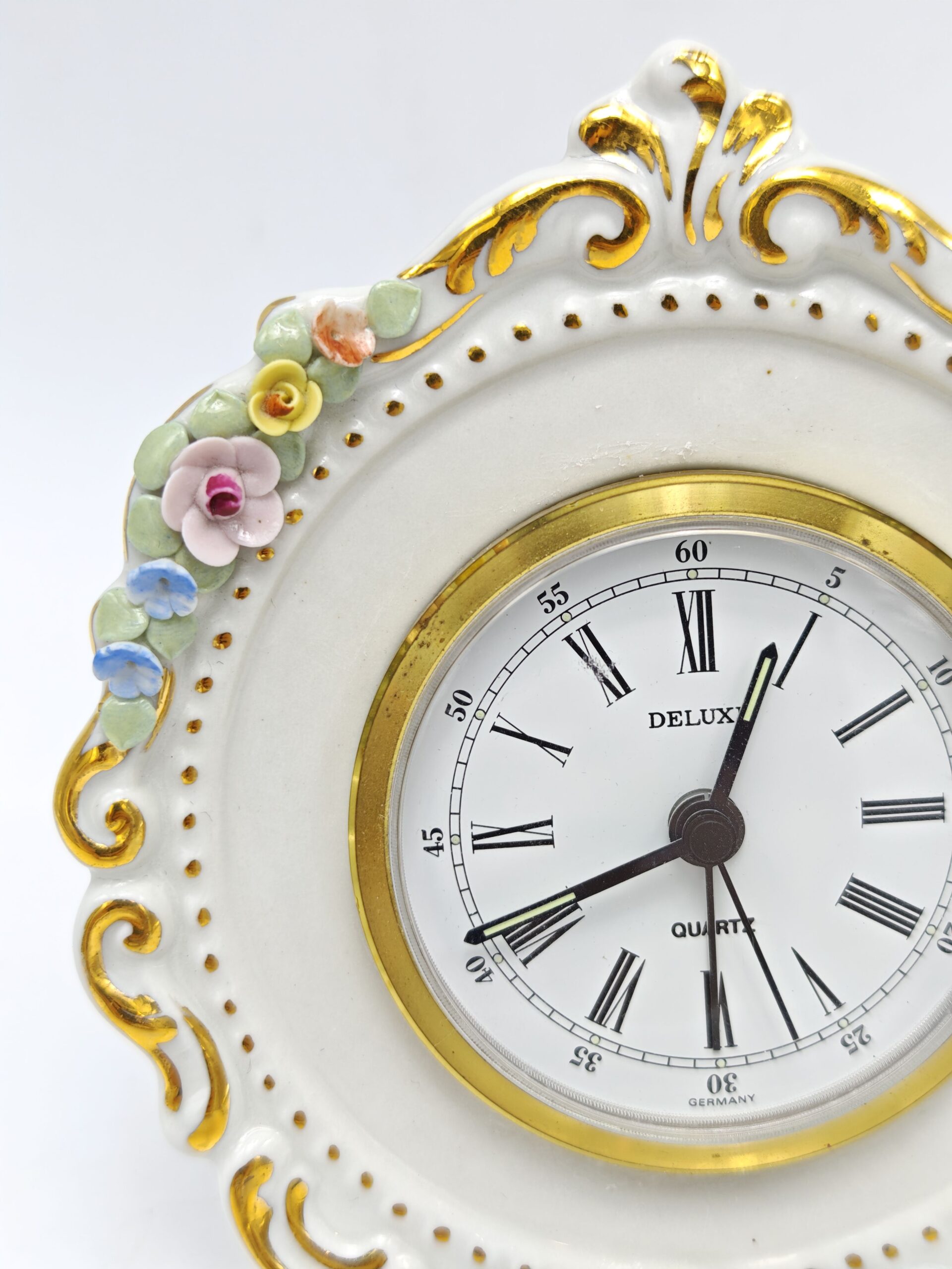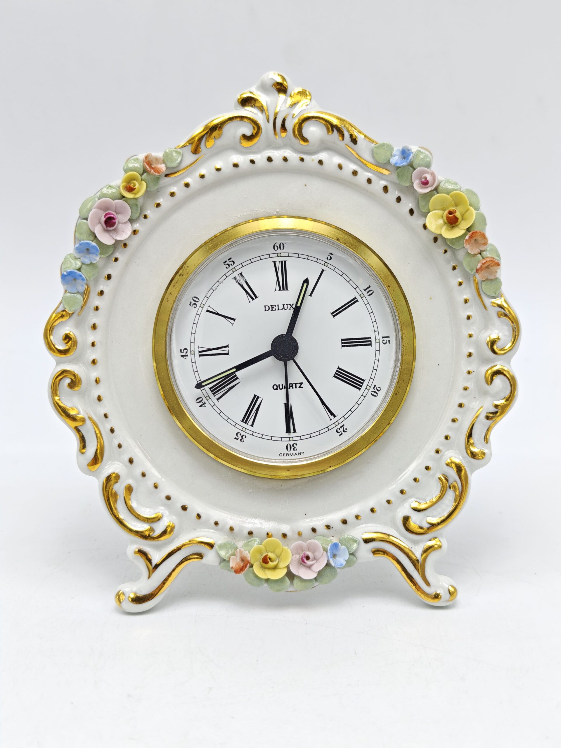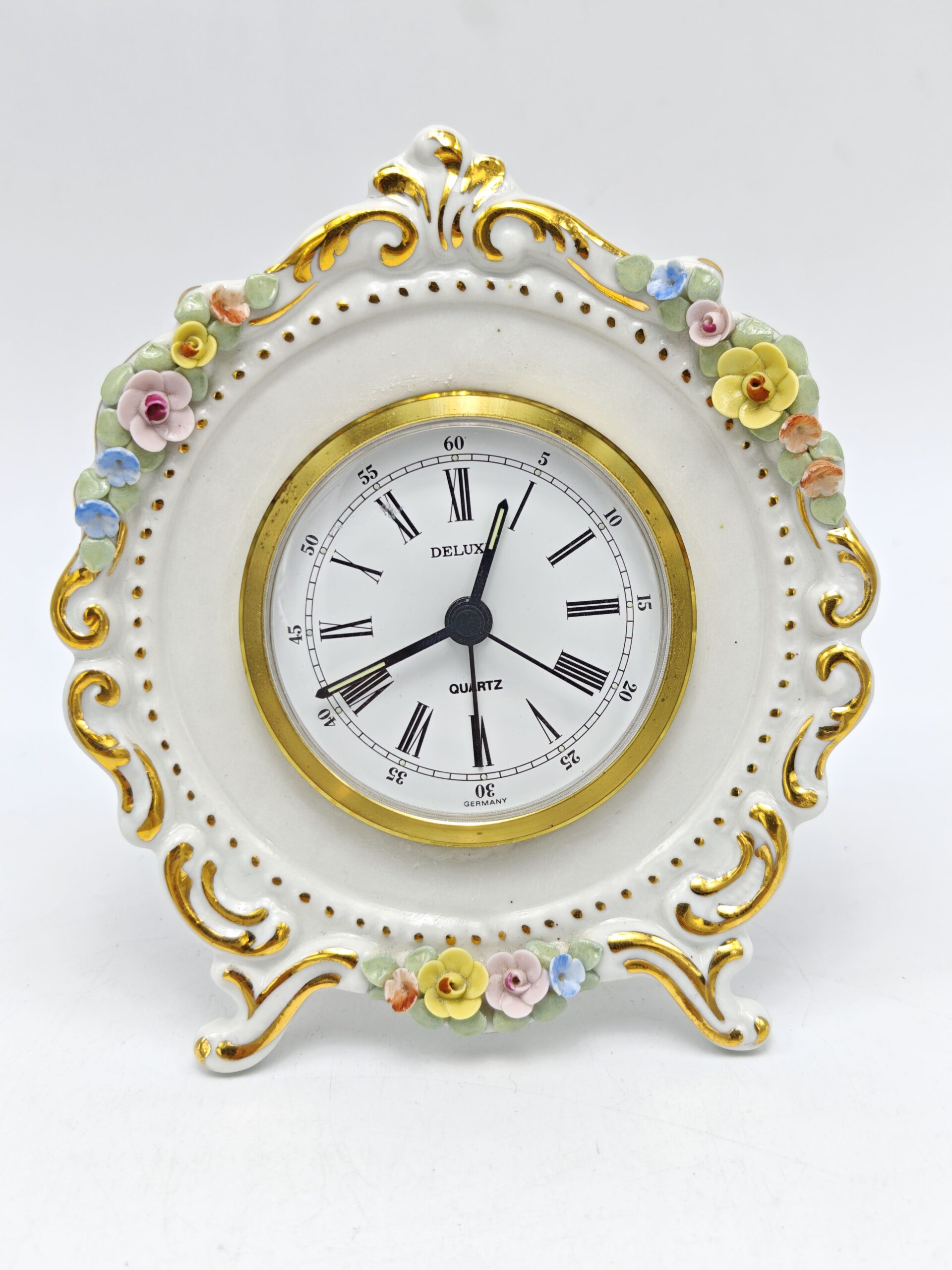 Часы фарфоровые настольные Delux, золочение. Кварцевые Размер 14х11.5 см Состояние отличное, без сколов. Часы на ходу.