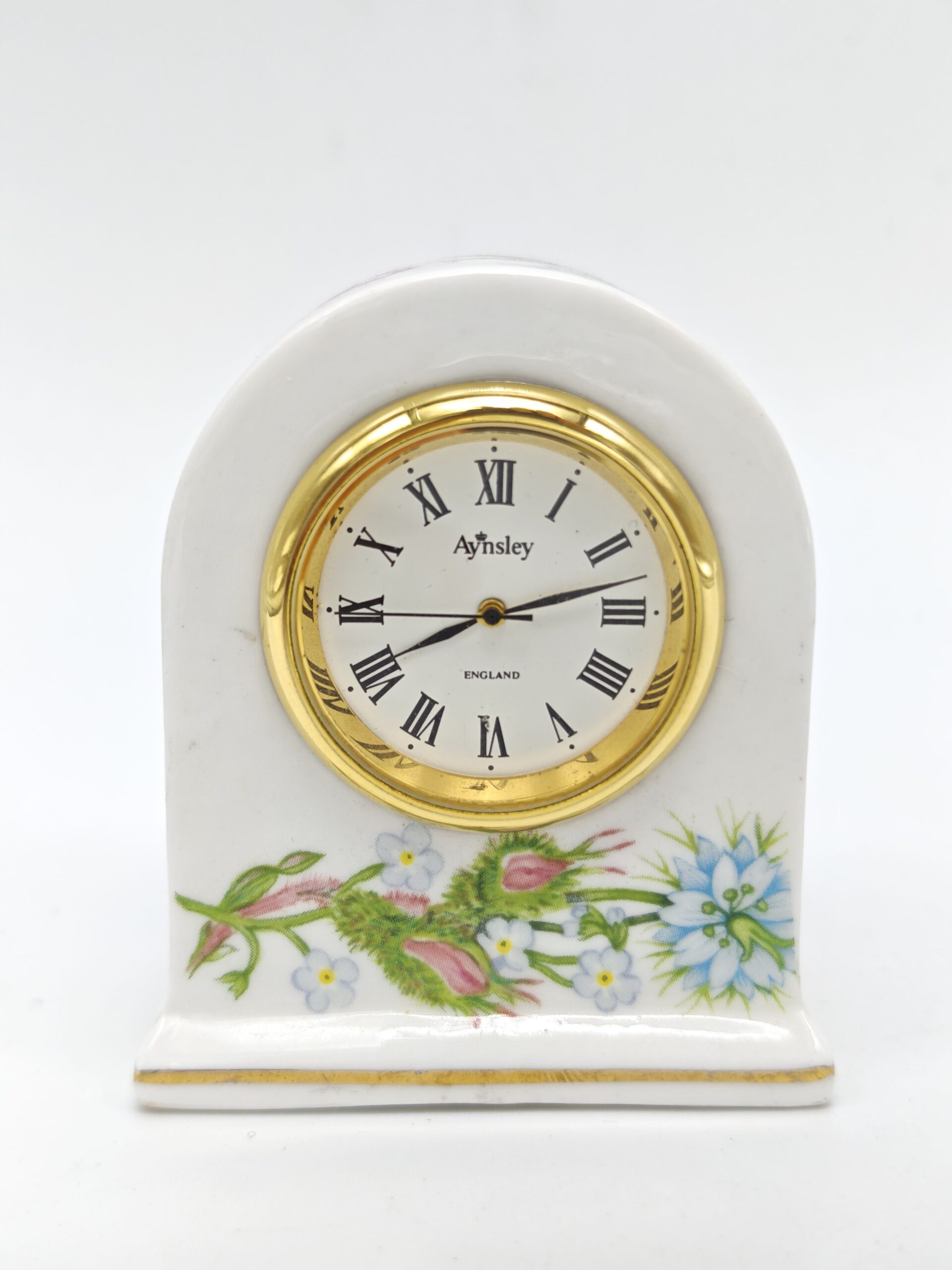 Часы настольные в фарфоровом корпусе, стекло, деколь, золочение.