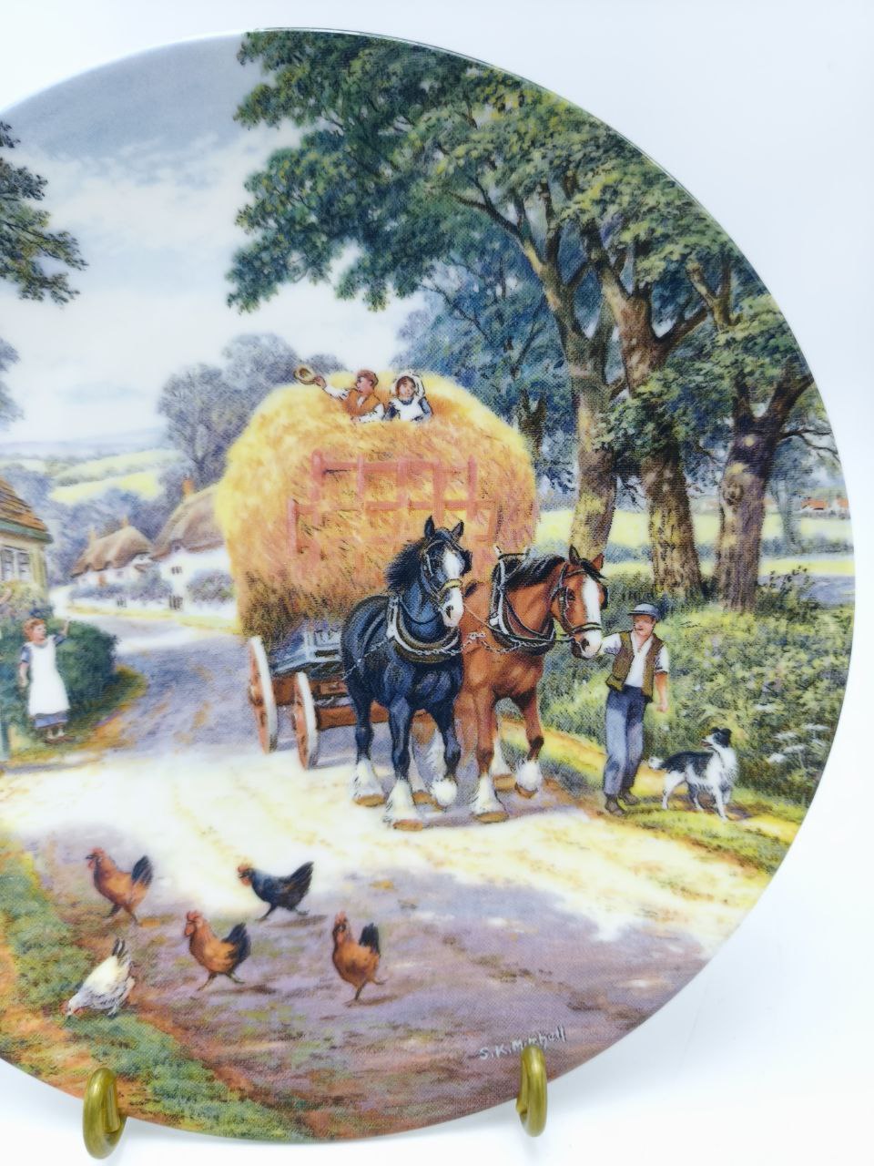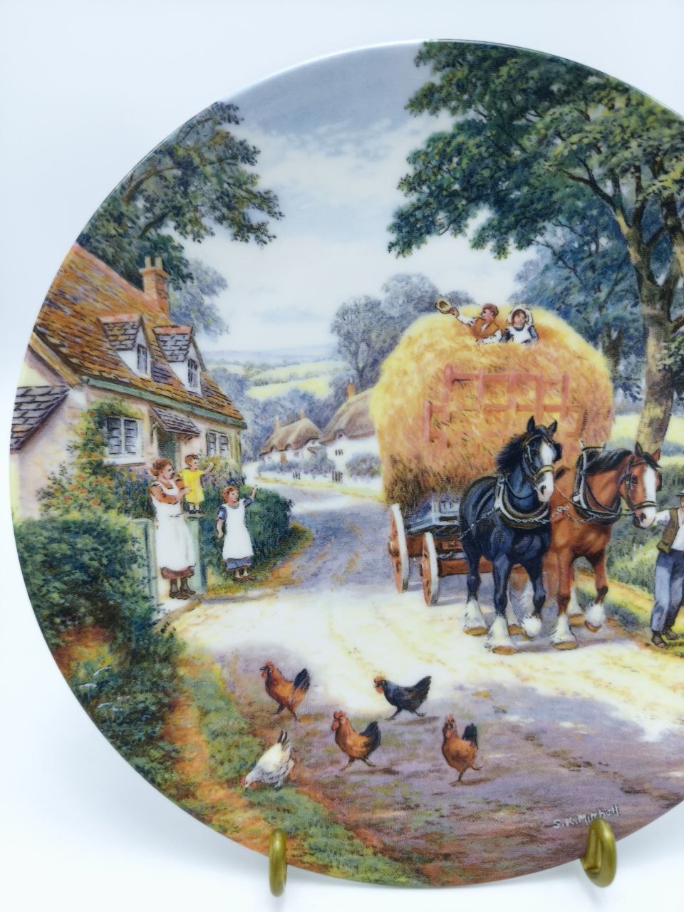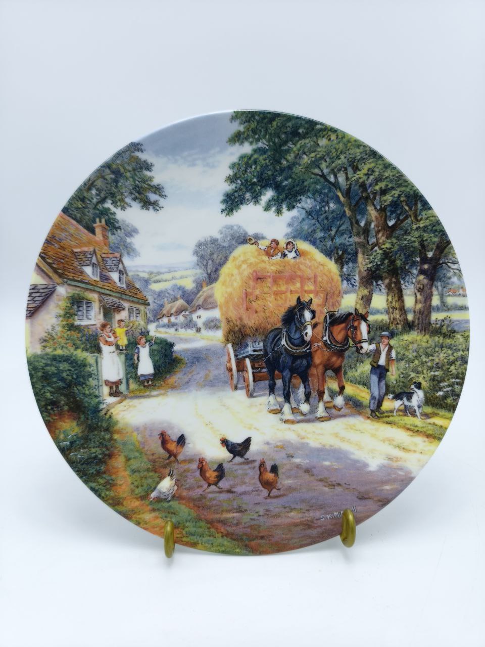 Декоративная тарелка «Сельская идиллия» — ваш оазис уюта и тепла. Окунитесь в атмосферу безмятежной деревенской жизни с этой изысканной декоративной тарелкой, выполненной из высококачественного фарфора. На ней запечатлена идиллическая сцена — телега, запряженная мощными лошадями, груженная свежим сеном, маленькие дети весело отдыхают на ее вершине, а неподалеку хозяйки любуются сельским пейзажем. На переднем плане — озорные курочки, придающие особенно теплую нотку композиции. Эта тарелка — настоящая находка для ценителей спокойной красоты и нежной романтики английского деревенского пейзажа. Изготовленная из изящного фарфора, она легко впишется в любой интерьер, будь то стиль кантри, прованс или классика. Изделие порадует идеальной детализацией каждого элемента, от густых крон деревьев до мельчайших деталей животных и людей.Подойдет как декоративный элемент для кухни, столовой или гостиной. Отличный подарок для тех, кто восхищается живописной природой и исторической атмосферой. Воссоздаст дух традиционной английской глубинки, даря уют и гармонию. Тарелка украшена оригинальной работой талантливого художника. Каждый мазок в этой сцене передает тепло, радушие и спокойствие деревенской жизни. Великолепное изображение лошадей, людей и курочек создают ощущение живого присутствия. Фарфор — прочный, гладкий, с изысканным блеском. Идеально подходит для размещения на стенах, полках или декоративных подставках. Ручная роспись: обеспечивающая исключительную детализацию и реалистичность. Не упустите возможность перенести частичку природы и спокойствия в ваш дом! Эта декоративная тарелка станет прекрасным дополнением к вашему интерьеру и подарит ощущение душевного тепла всем, кто ее увидит.