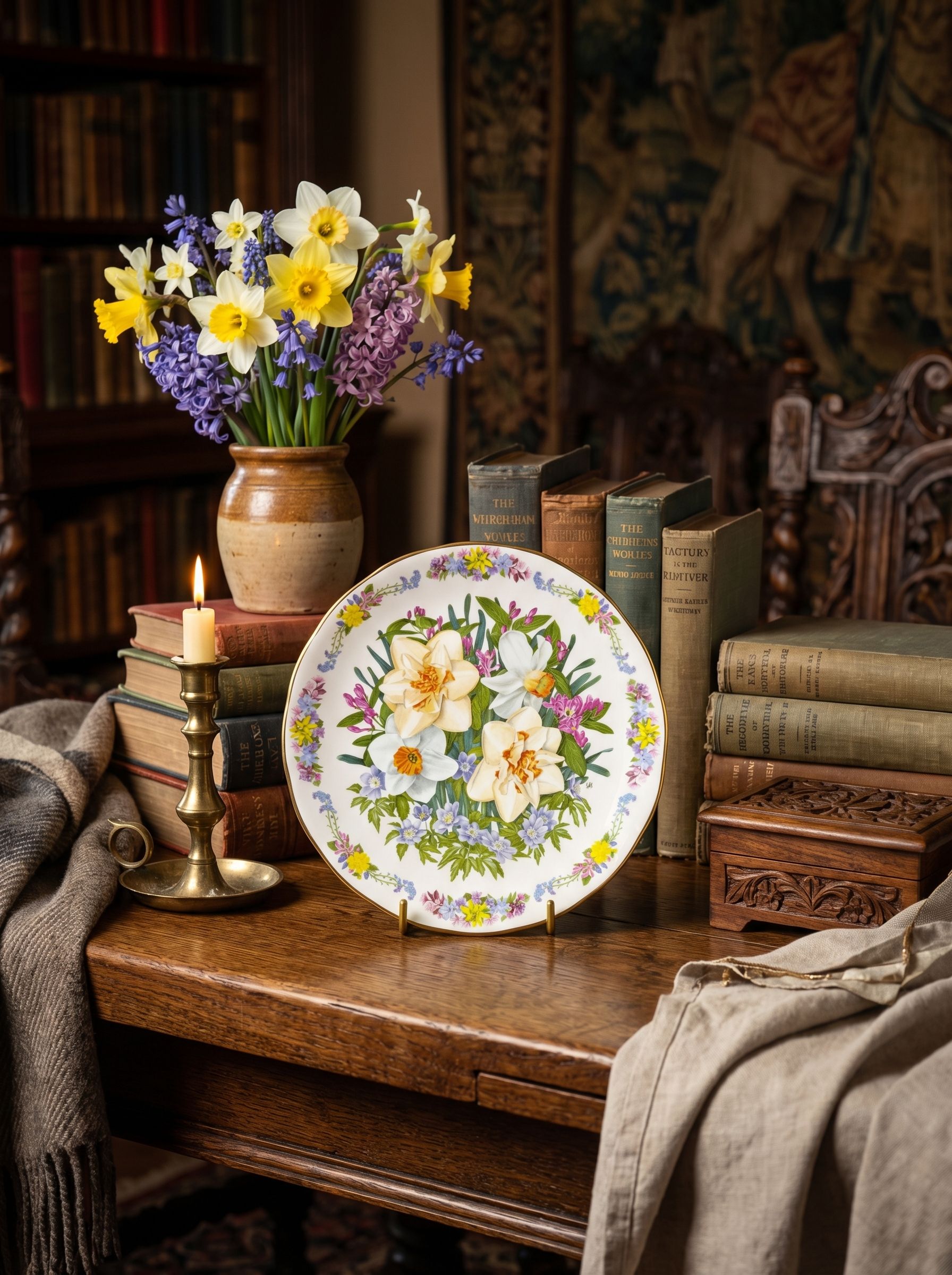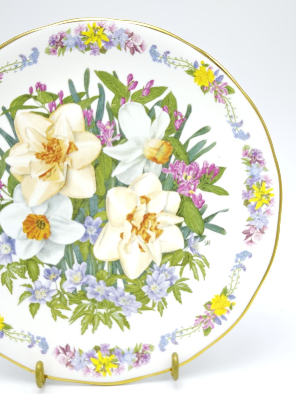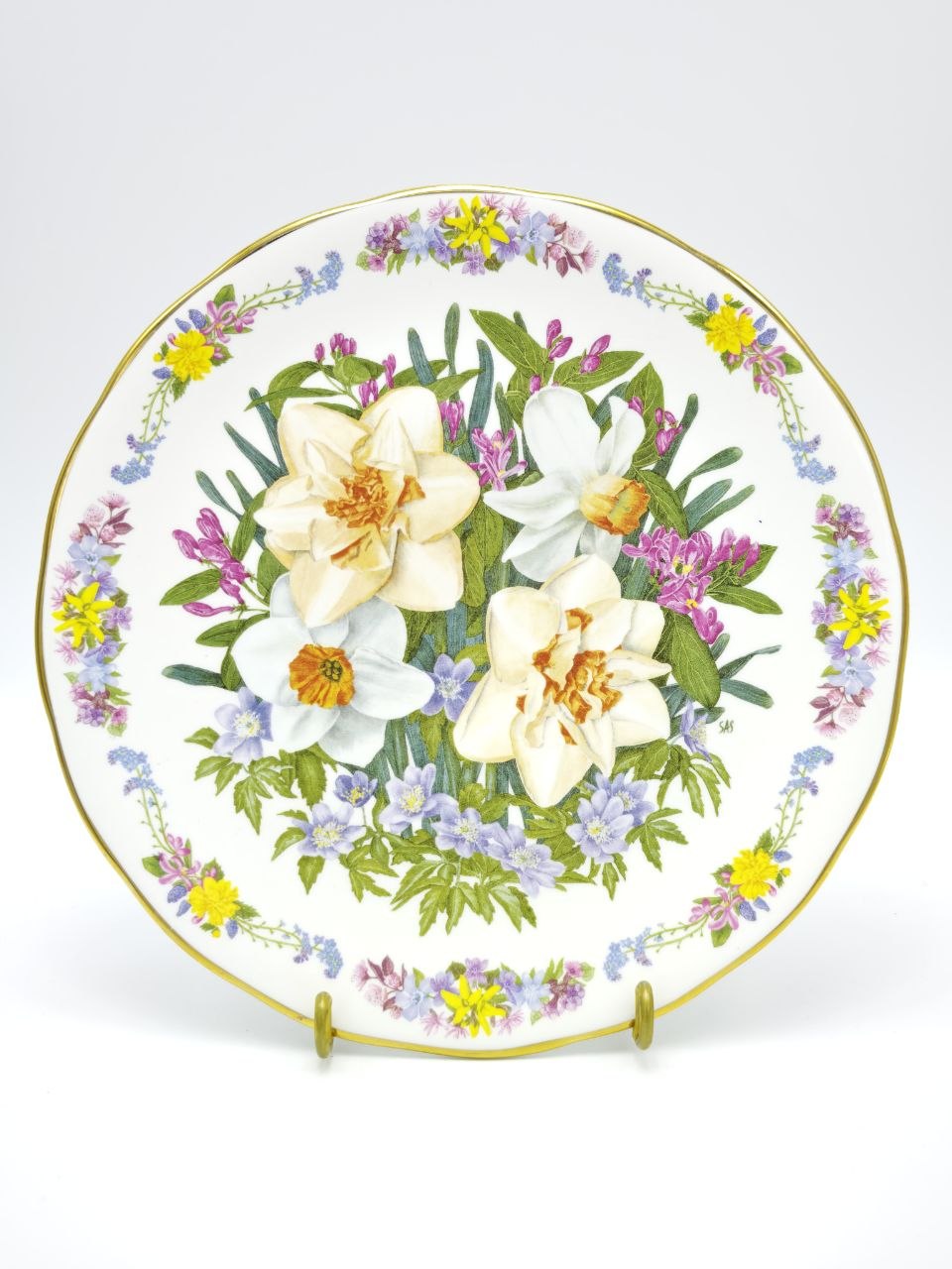 Настенная декоративная тарелка из костяного фарфора с выразительной цветочной композицией в мягкой природной палитре. Изделие создано брендом Royal Grafton в серии Fields of Hope по дизайну Sara Anne Schofield. Диаметр тарелки — 22 см, удобно подходит для размещения в интерьере или в составе коллекции. На обороте указано название «Faith and Courage», присутствуют фирменные клейма и номер лимитированного выпуска. Элегантный элемент декора для оформления пространства.