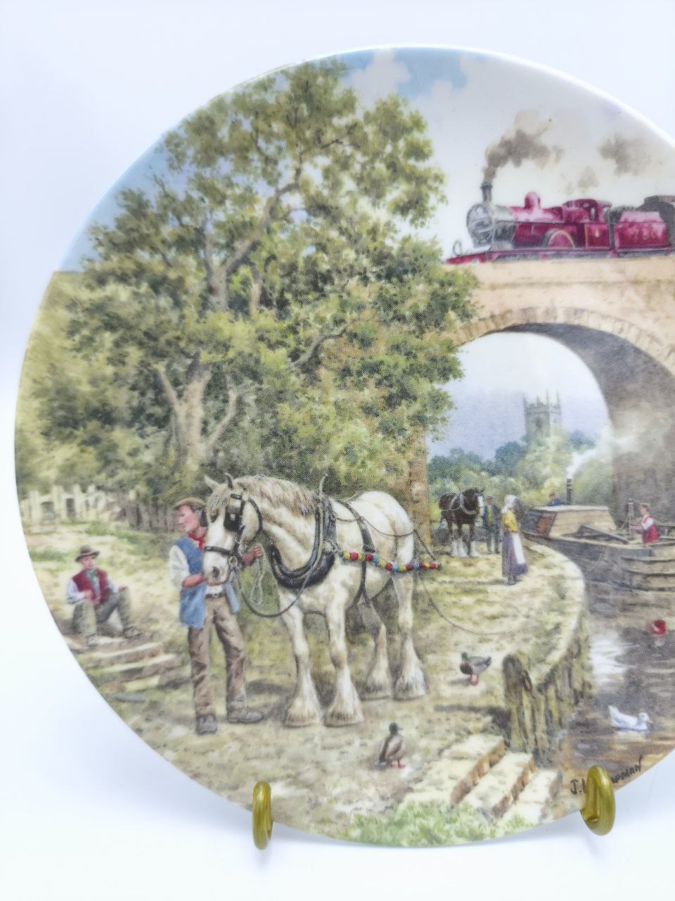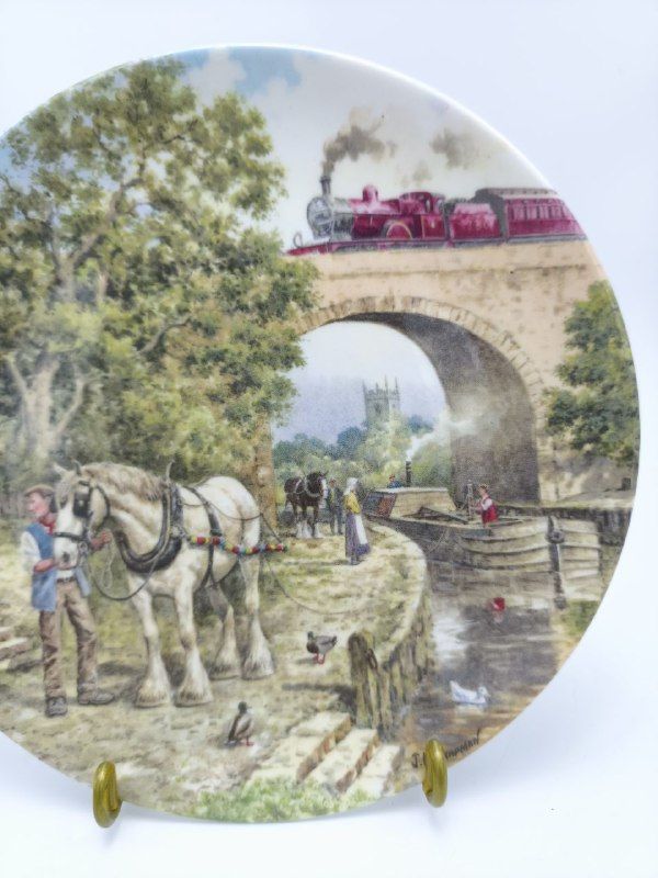 Декоративная фарфоровая тарелка с изысканным изображением сельской жизни создана для ценителей утонченных деталей и классической эстетики. На этом изделии представлены яркие элементы традиционного английского деревенского пейзажа — рабочие лошади, спокойный канал с баржей, утки, а также каменный арочный мост с паровозом, пересекающим реку. Сцена наполнена атмосферой уюта, тепла и тихой повседневности, создавая ностальгическую картину прошлого.Высококачественный фарфор, использованный для создания тарелки, обеспечивает её долговечность и эстетическую привлекательность. Внимание к деталям позволяет увидеть тонкости в изображении природы, деревьев, воды и архитектуры. Каждый элемент композиции раскрывает характер и красоту сельской жизни, делая тарелку не просто декоративным объектом, но настоящим произведением искусства.Тарелка выполнена в стандартном размерном формате, что делает её удобной для размещения на декоративной подставке, в витрине или настенном креплении. Это универсальное решение для украшения любого пространства — кухни, гостиной или кабинета, где она добавит нотки тепла и традиционного очарования.Дизайн тарелки делает её идеальным подарком для коллекционеров, любителей ретро-стиля или поклонников изысканных фарфоровых изделий. Такой предмет подчеркнёт индивидуальность интерьера и внесёт в него утончённый штрих. Это также удачное решение для тематической коллекции объектов искусства.Для сохранения оригинальной красоты тарелки рекомендуется её бережный уход. Протирайте её мягкой тканью или губкой, используя только деликатные моющие средства, чтобы не повредить рисунок. Она станет долгосрочным украшением вашего дома, вызывая восхищение и создавая уютную атмосферу.